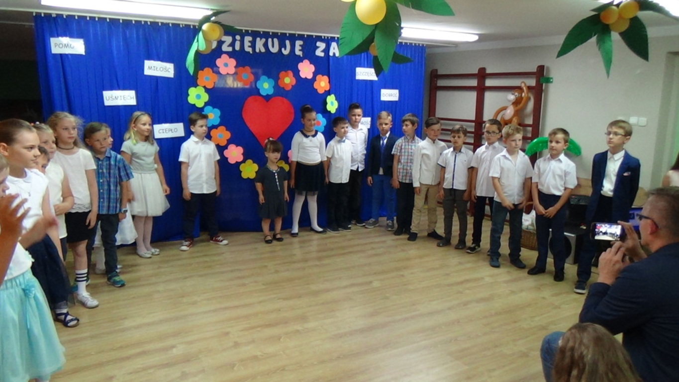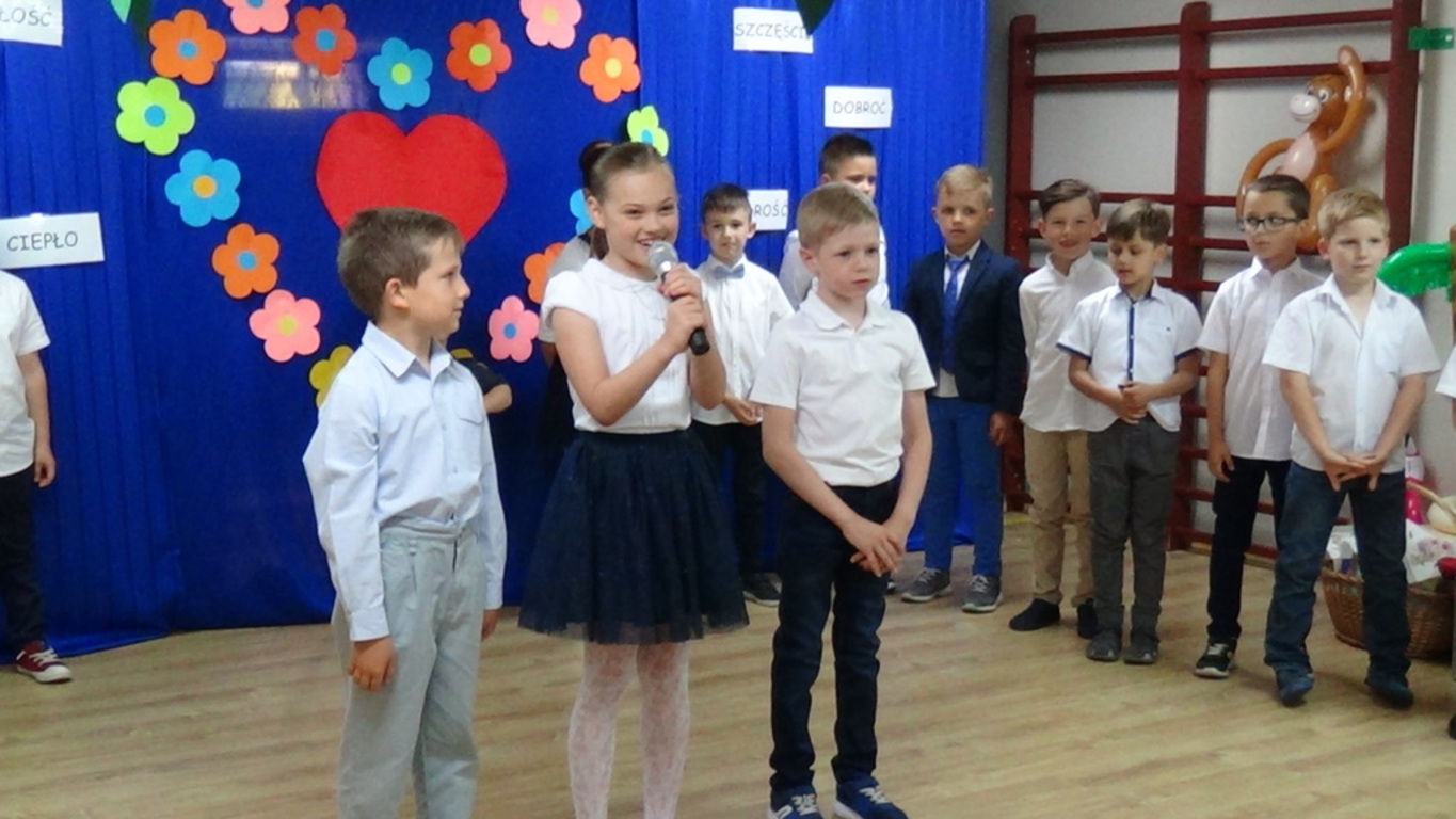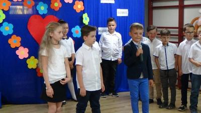 Dnia 13 czerwca 2018 r. dzieci z klasy I E (wych. E. Sadkowska) zaprosiły swoich Rodziców na uroczystość z okazji Dnia Mamy i Taty. Na tę okoliczność pierwszoklasiści przygotowali dla Rodziców montaż słowno - muzyczny z mnóstwem pięknych piosenek i wierszyków. Wszyscy goście z zaciekawieniem i ze wzruszeniem słuchali piosenek, wierszyków i życzeń. Po przedstawieniu dzieci wręczyły Rodzicom upominki i laurki. Uroczystość, która przebiegła w ciepłej i serdecznej atmosferze, zakończono wspólnym poczęstunkiem przygotowanym przez Rodziców. To był miły akcent kończący pierwszy rok nauki w naszej szkole.