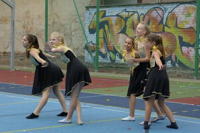 Dziewczęta z tanecznych grup SP 8 podczas pikniku rodzinnego ph. „Dla zdrowia i Zosi”