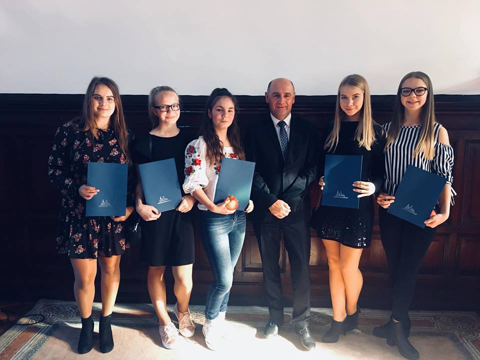 Z dumą i ogromną radością informujemy, że dn. 12 października nasze pracowite i utalentowane tancerki zostały nagrodzone i wyróżnione przez Burmistrza Miasta Lęborka za szczególne osiągnięcia w kategorii Sztuka i kultura. Podczas uroczystości z okazji Dnia Edukacji Narodowej, która odbywała się w reprezentacyjnej Sali Rajców lęborskiego ratusza, Burmistrz Witold Namyślak podziękował m.in. uczniom osiąganych wyników, pasji i zaangażowania.