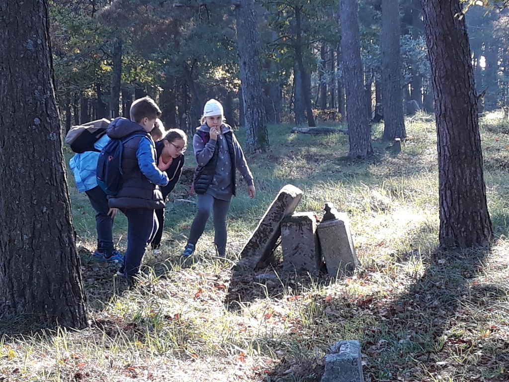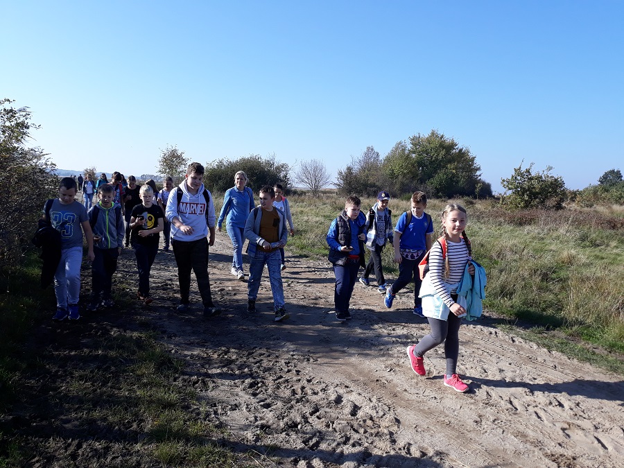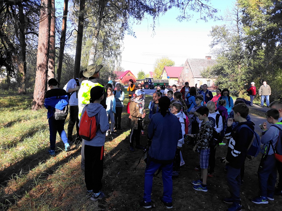 Rajd pieszy w dniu 13 października rozpoczął się dla naszych uczniów i ich opiekunów (p. Małgorzata Staniszewska i p. Danuta Król) od pobytu w malowniczej wsi Żarnowska. Tam mogliśmy zobaczyć kościół pw. św. Brata Alberta. Tuż przy kościele znajduje się poniemiecki cmentarz, niedaleko lasu.