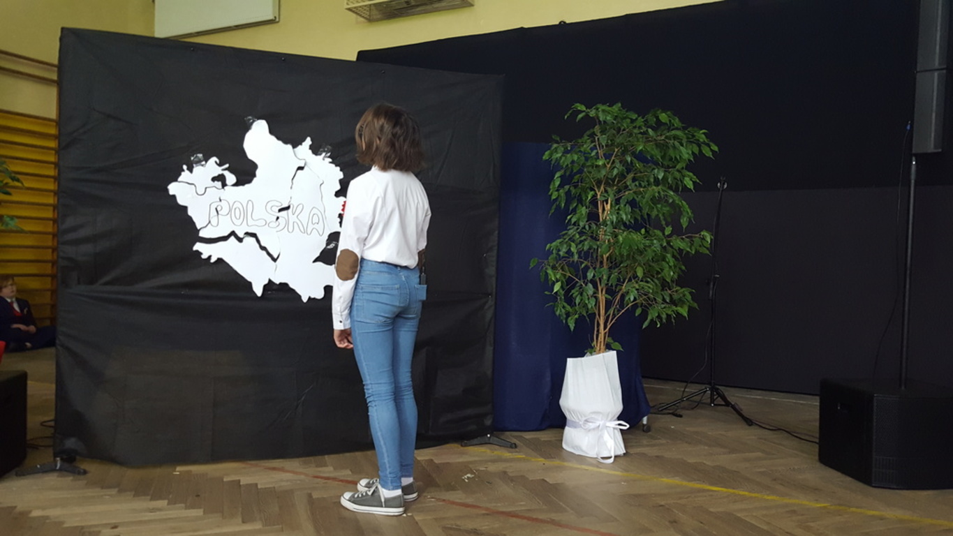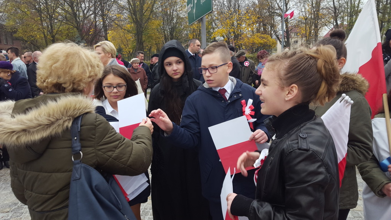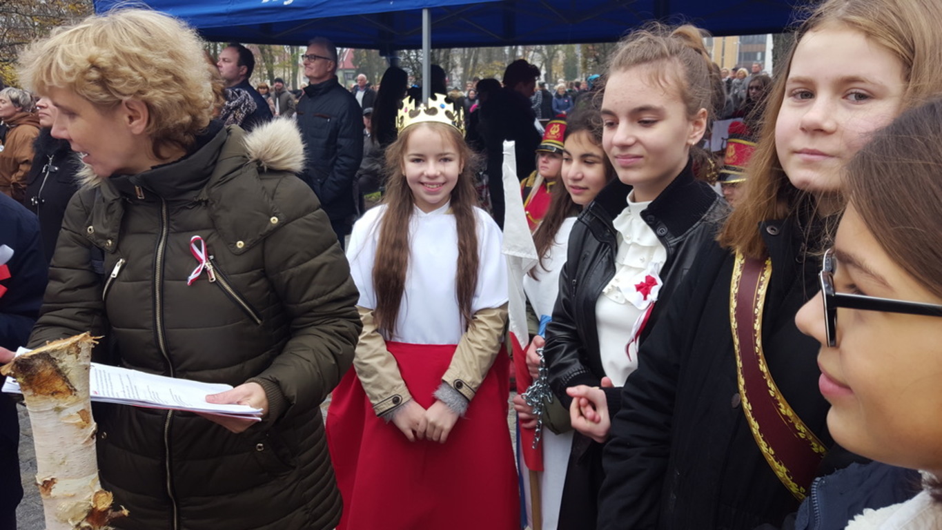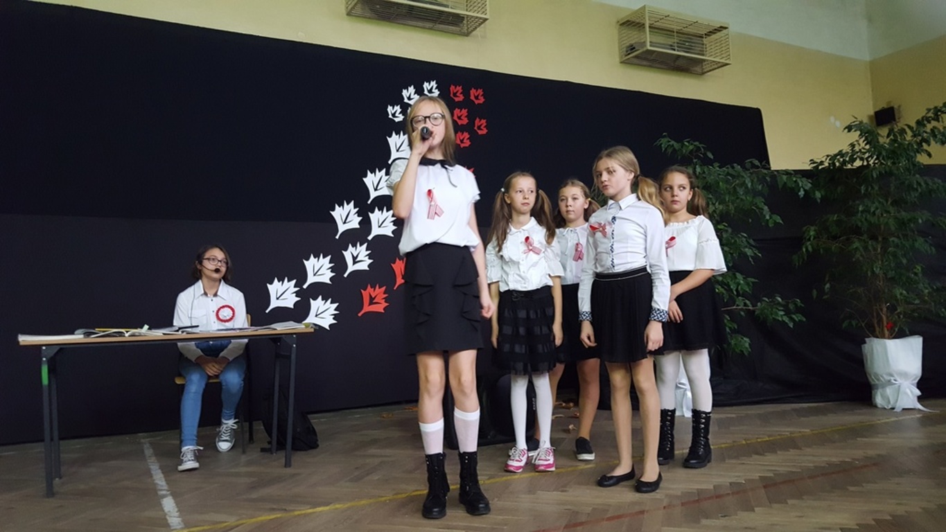 Obchody Święta Odzyskania Niepodległości - galeria (szkolne przedstawienie oraz montaż słowno-muzyczny zaprezentowany w ramach miejskich obchodów rocznicy uzyskania niepodległości przez Polskę).