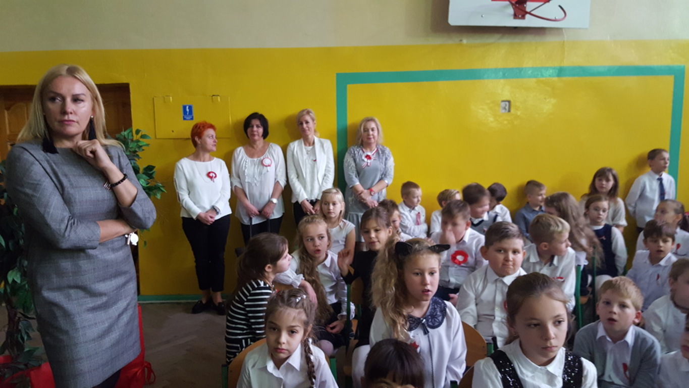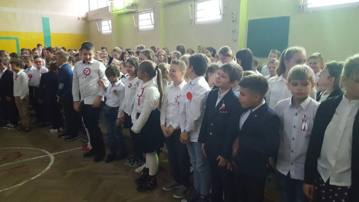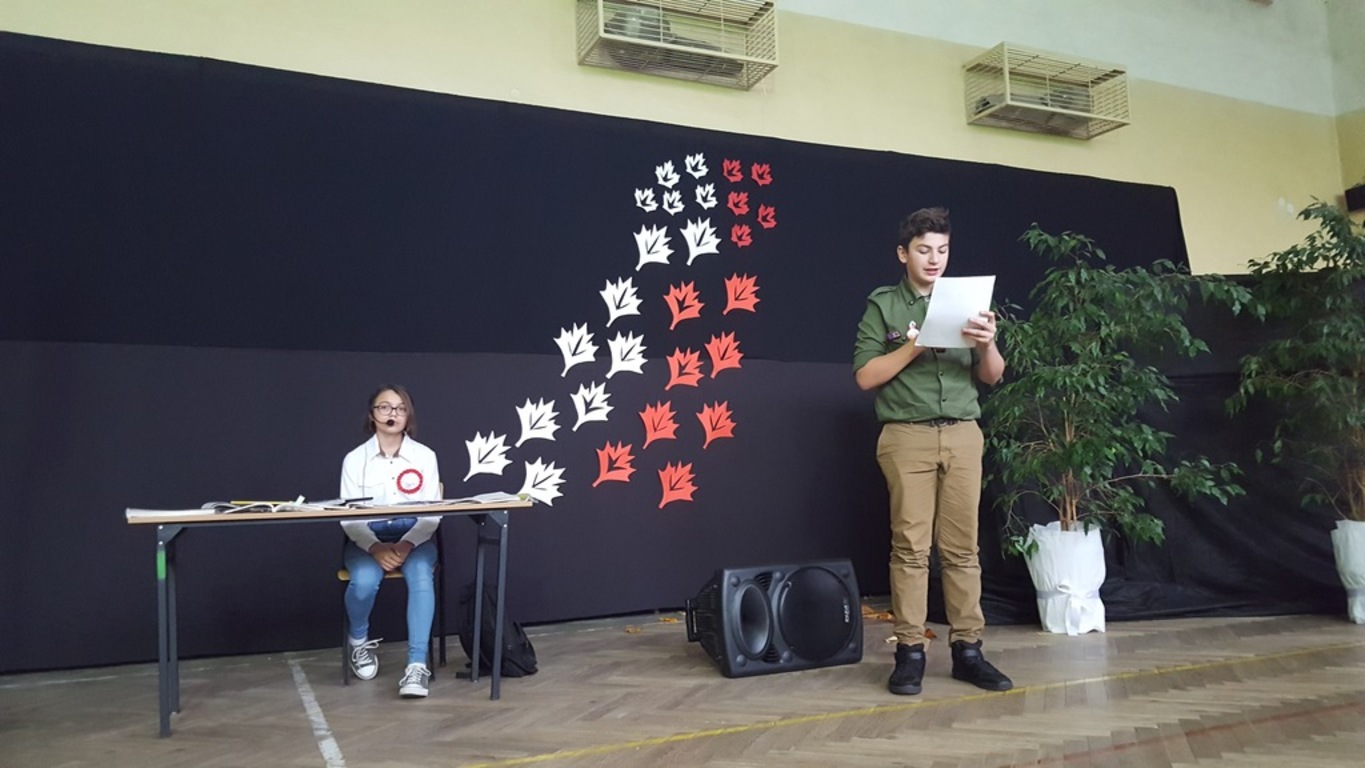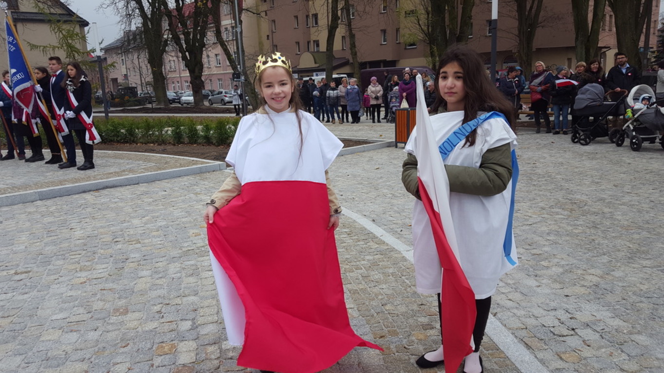 Obchody Święta Odzyskania Niepodległości - galeria (szkolne przedstawienie oraz montaż słowno-muzyczny zaprezentowany w ramach miejskich obchodów rocznicy uzyskania niepodległości przez Polskę).
