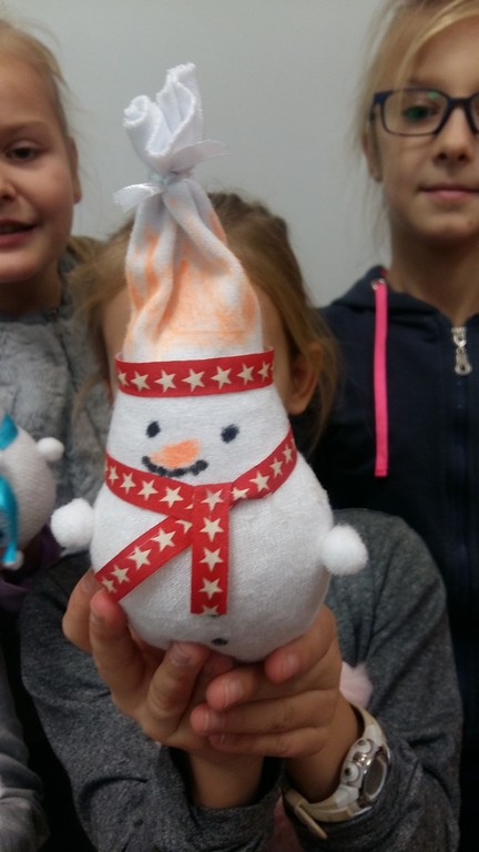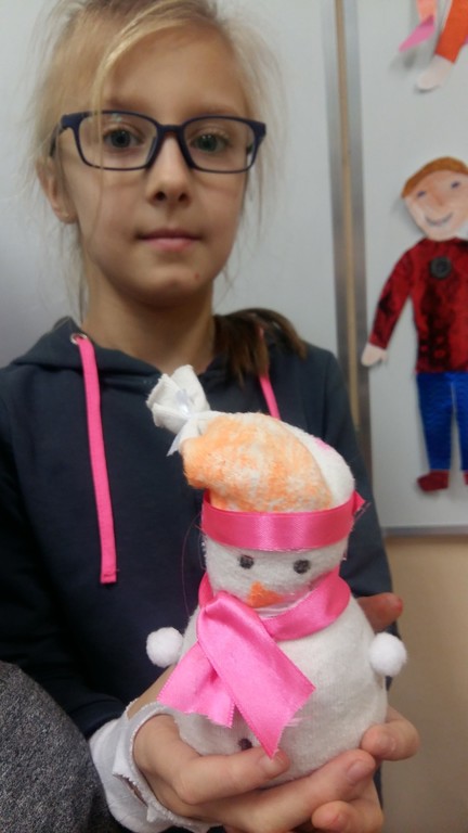 Uczestnicy koła turystyczno-plastycznego, chcąc przywołać zimę i wszystkie jej uroki, wykonali piękne „skarpetkowe bałwanki”. Wykorzystali do tego białe skarpetki, ryż, kolorowe wstążeczki i oczywiście swoją wyobraźnię. Zimo, zimo... Czekamy!
