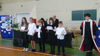 W czasie apeli uczniowie naszej szkoły otrzymali dyplomy, nagrody oraz stypendia za szczegolne osiądnięcia w nauce i sporcie.
