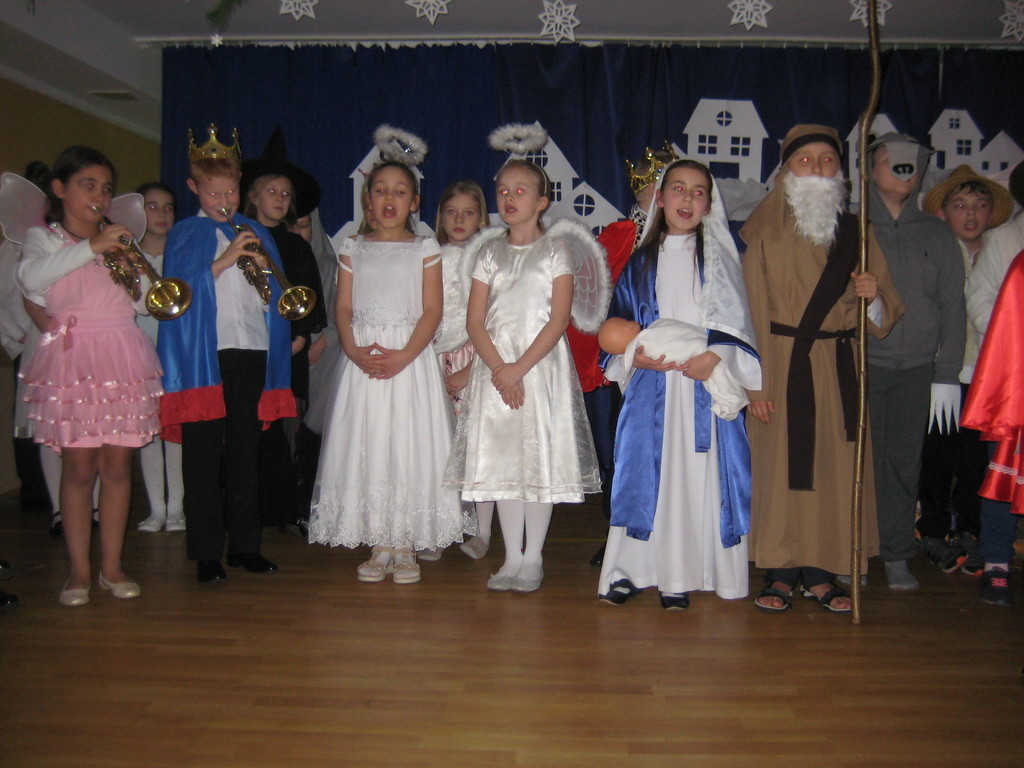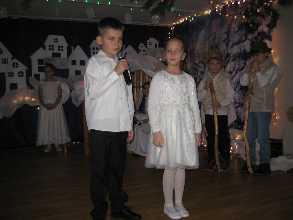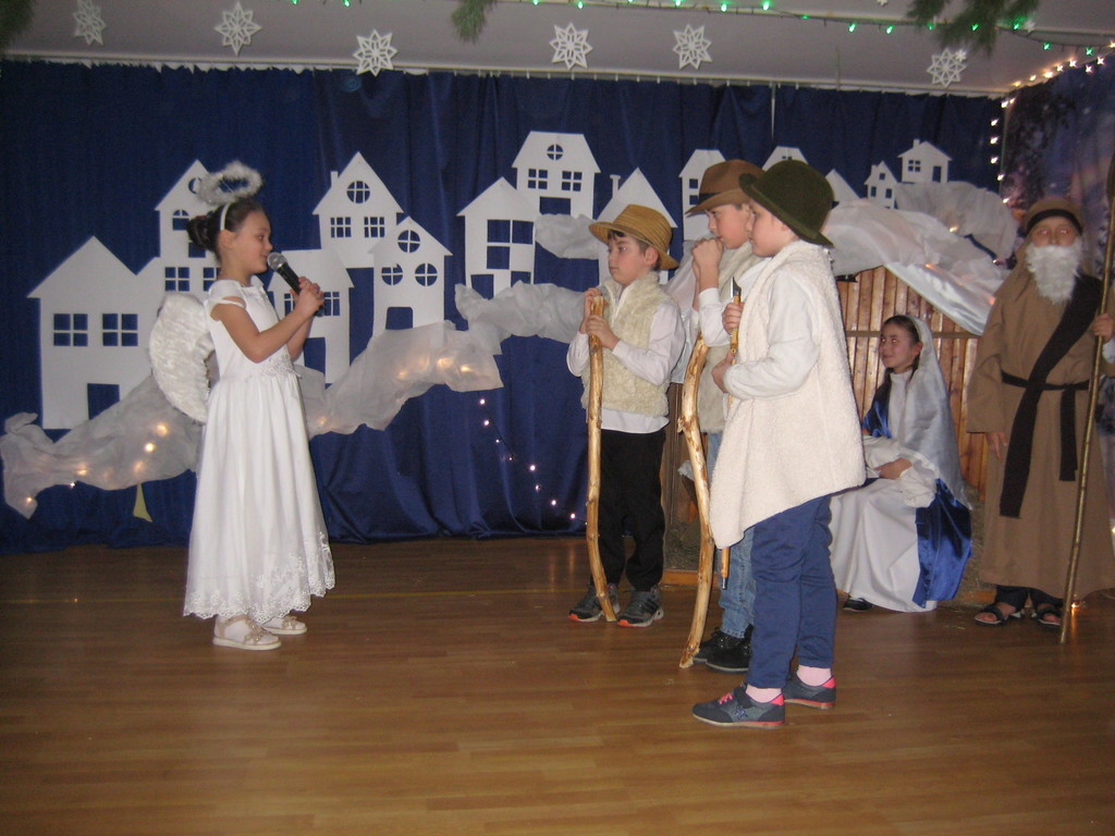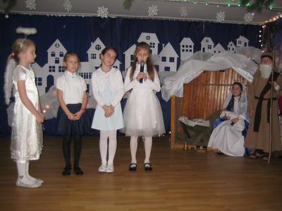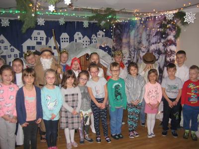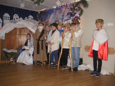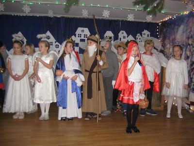 Uczniowie pokazali swoje umiejętności aktorskie dla rodziców podczas zebrania podsumowującego I półrocze nauki, dla koleżanek i kolegów z klas I - III przed świętami Bożego Narodzenia, dla przedszkolaków oraz podczas konkursu śpiewania kolęd i pastorałek.