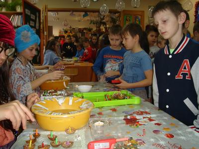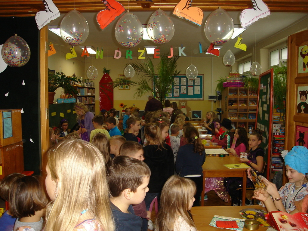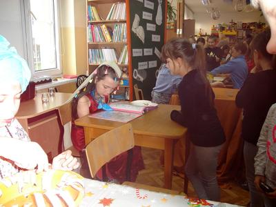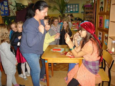 Andrzejki są specjalną okazją do zorganizowania ostatnich hucznych zabaw przed rozpoczynającym się adwentem. Dlatego też w wigilię św. Andrzeja w bibliotece szkolnej dzień upłynął pod znakiem wróżb i dobrej zabawy. Do wyboru były tradycyjne andrzejkowe wróżby, jak również te mniej znane, ale równie atrakcyjne: wróżby z kart, wirująca butelka, drzewko szczęścia, wróżba z zapałek, numerologia, przyszły zawód, orzechowe łódeczki i wiele innych. W udekorowanej odświętnie czytelni na chętnych do zabawy czekało 20 wróżek, gotowych odkryć przed zainteresowanymi sekrety ich przyszłości J Tego dnia bibliotekę odwiedziło 21 klas I-VI z wychowawcami, a podczas przerw przychodzili też inni zaciekawieni uczniowie z klas I-VI.