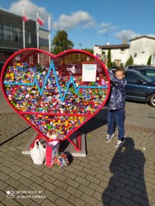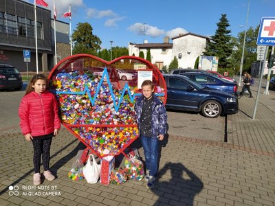 Uczniowie klasy 2 d - Karolina Kozyra i Szymon Złoch aktywnie włączyli się w akcję zbierania plastikowych nakrętek. Od marca 2020 r. nie mogli przynosić ich do szkoły, jednak to nie zniechęciło ich do działania. Przez cały czas z zaangażowaniem realizowali zadanie, bo są świadomi, że przez taką prostą czynność mogą wspomóc środowisko i potrzebujących. Zgromadzone nakrętki postanowili umieścić w symbolicznym „sercu” w Nowej Wsi Lęborskiej. Akcja „zbieramy nakrętki” jest zwykle organizowana w szczytnym celu, dla chorych i poszkodowanych przez los. Po sprzedaniu plastikowych nakrętek wolontariusze uzyskują pieniądze, które przekazują potrzebującym. Same zaś nakrętki są skupowane przez firmy, które następnie przetwarzają je na granulat, z którego wytwarza się rury PCV, opakowania, wiadra budowlane, łopaty do śniegu, doniczki itp. Jak widać projekt w założeniach ma wspomagać ekologię, recykling, świadomą segregację odpadów oraz wspieranie potrzebujących. Każdy powód jest dobry, aby zbierać nakrętki :-)
