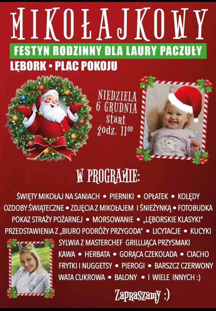Już 6 grudnia na Placu Pokoju odbędzie się charytatywny festyn dla Laury Paczuła chorej na SMA. Będzie moc atrakcji! Każdy, kto ma ochotę wspomóc rodzinę Laury w wyzwaniu, jakim jest zdobycie 9 milionów złotych na terapię genową, musi tam być! Zróbmy Jej mikołajkowy prezent.