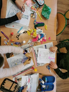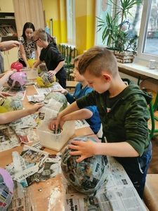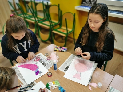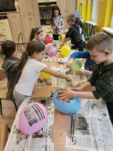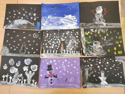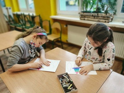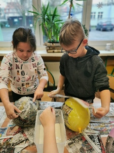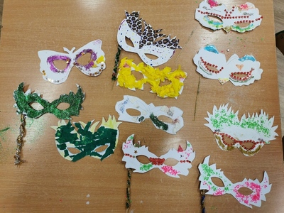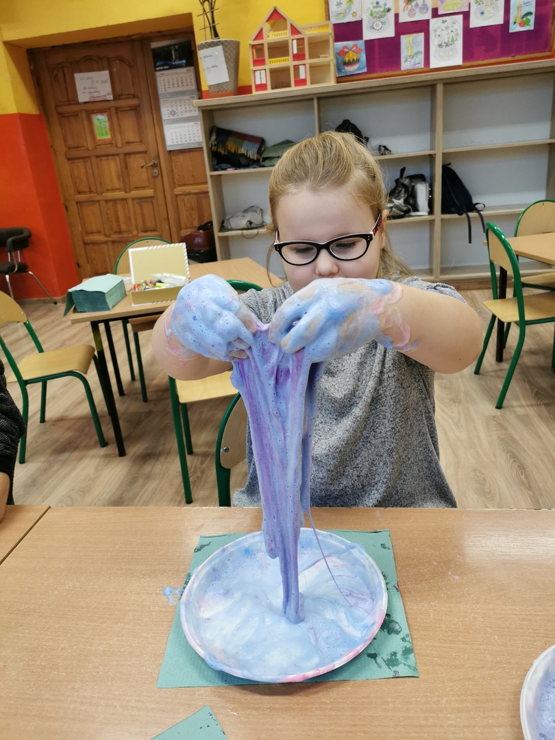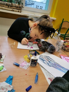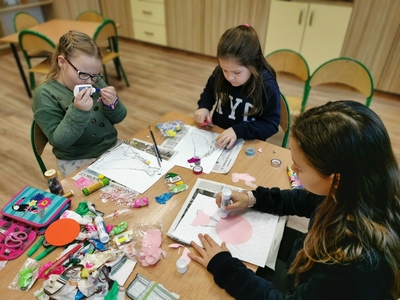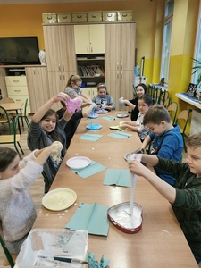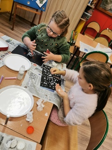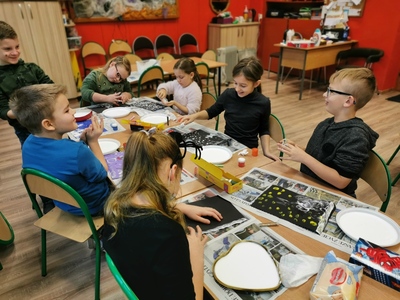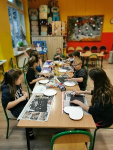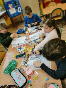 Pierwszy tydzień ferii zimowych za nami. Bez wątpienia można go zaliczyć do bardzo udanych. Mimo braku śniegu nie opuszczał nas dobry humor. Tydzień rozpoczęliśmy wykonaniem masek karnawałowych. Następnego dnia zabawiliśmy się w małych projektantów i kreowaliśmy balową garderobę zarówno dla dziewczynek jak i dla chłopców. Stworzyliśmy także własnego slime'a, a każdy uczestnik nadał mu indywidualny charakter, wykorzystując przy tym farby i kolorowe brokaty. W tym tygodniu nie zabrakło również tworzenia makramy z własnoręcznie wykonanych piórek, tęczowej wydrapywanki czy zimowego pejzażu przy wykorzystaniu pianki do golenia. Przystąpiliśmy również do warsztatów z tworzenia urodzinowej piniaty, drugi etap przewidziany został na kolejny tydzień. W wolnych chwilach, choć takich jest mało, budujemy z klocków, gramy w planszówki, układamy puzzle itp. Przed nami drugi tydzień, gdzie czeka nas wiele ciekawych atrakcji i na pewno nie zapomnimy o upominkach dla naszych kochanych dziadków.