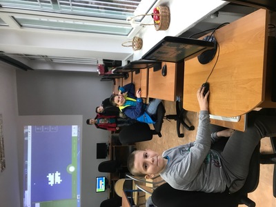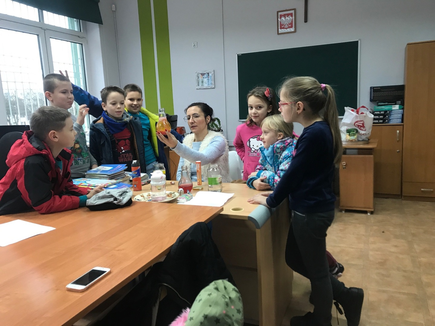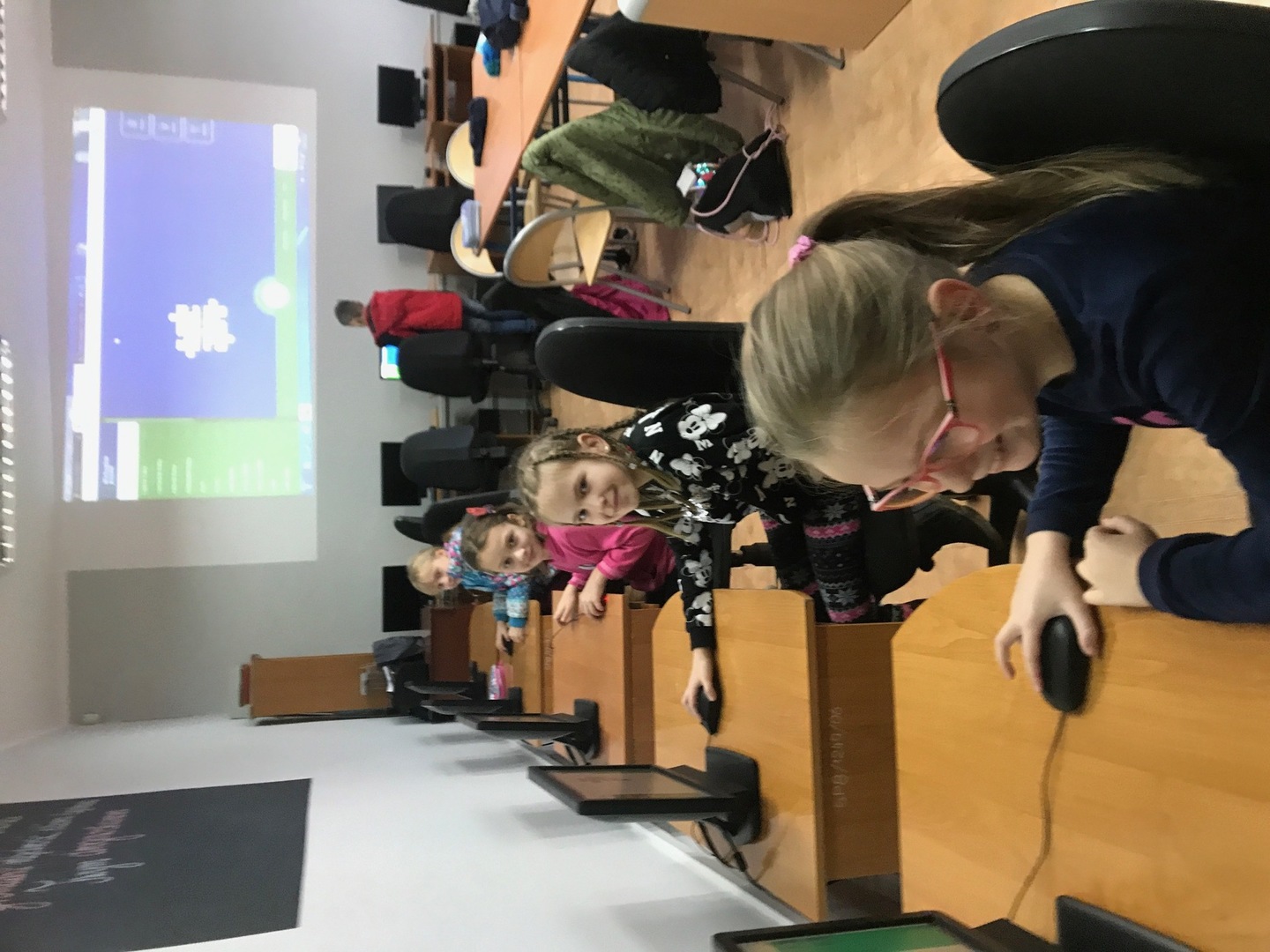 Na początku przypomnieliśmy i utrwaliliśmy, jakie zagrożenia mogą czyhać na nas w sieci oraz jakie są zalety tego, że żyjemy w „globalnej wiosce”. Udało się nam stworzyć trasę, po której poruszał się robot - co niektórzy zbudowali wręcz autostradę. Był czas kreatywnego rysowania na macie do kodowania, jak również wydawania poleceń, dzięki którym wybrany obiekt poruszał się tak, jak tego sobie życzyliśmy. Na sam koniec stworzyliśmy swoją pierwszą animację w programie Scratch. Z racji tego, że zajęcia miały również charakter przyrodniczy, wykonaliśmy eksperymenty. Nie zabrakło wulkanu z lawą, kolorowego deszczu, eksplozji bąbelków, jak również cieczy nienewtonowskiej.