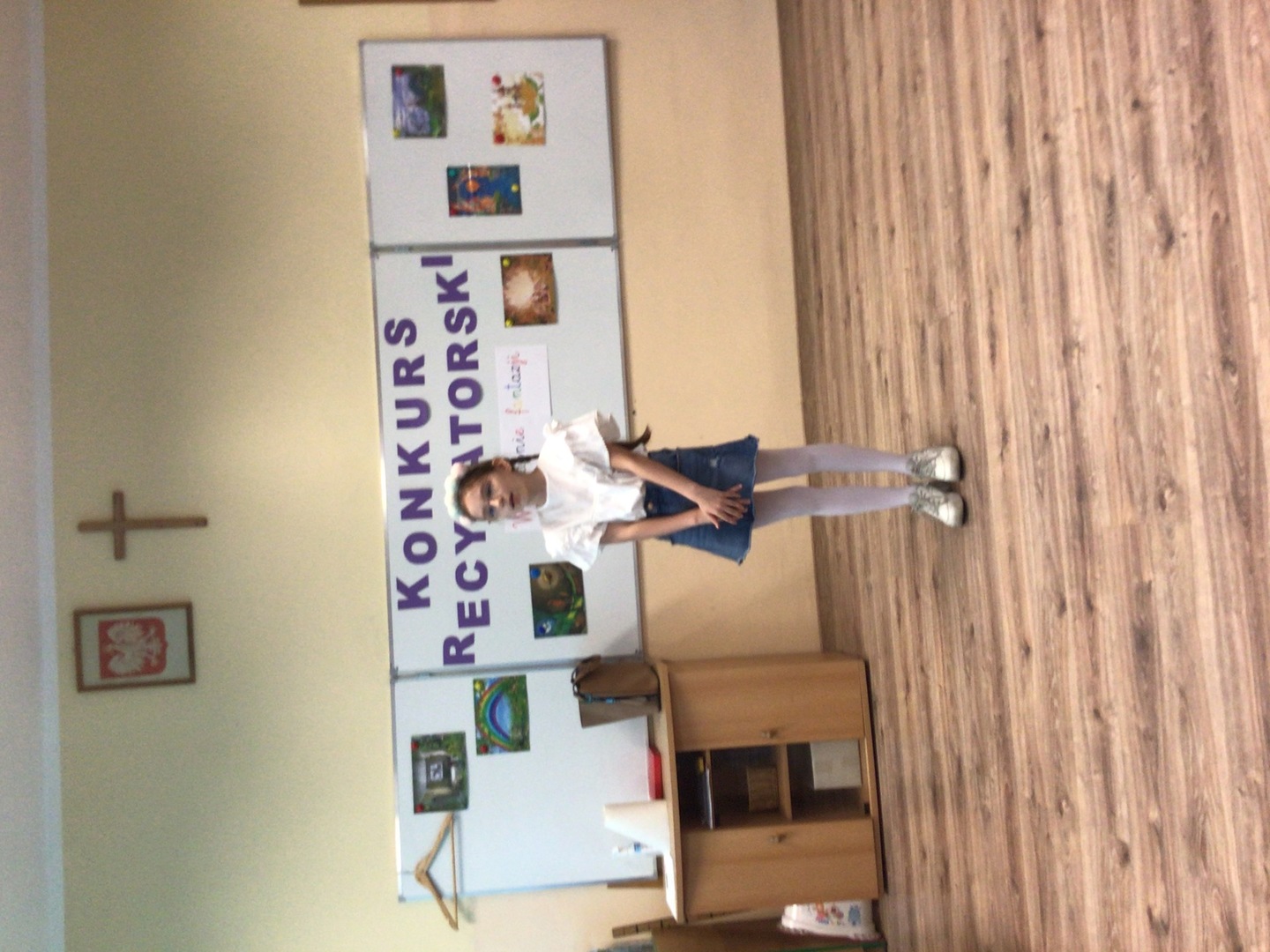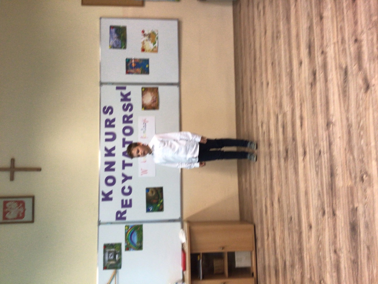 13 maja w naszej szkole odbył się konkurs recytatorski dla uczniów klas trzecich. Wzięło w nim udział 12 recytatorów. Konkurs przebiegał w serdecznej i miłej atmosferze. Występom dzieci towarzyszyły wielkie emocje. Wybór laureatów był niełatwy, ponieważ wszyscy uczestnicy prezentowali wysoki poziom.