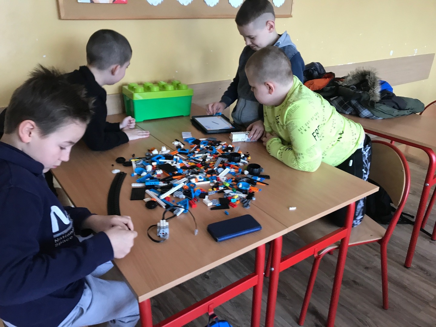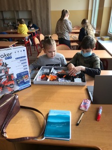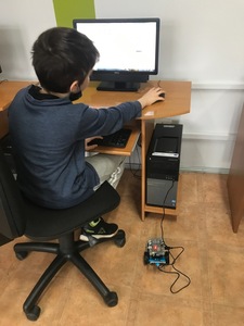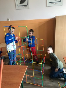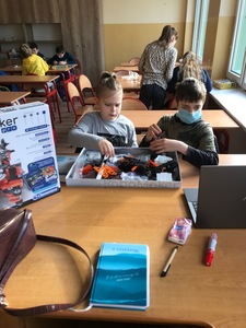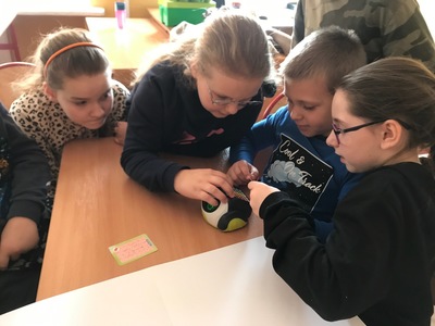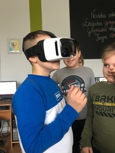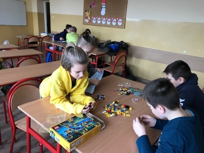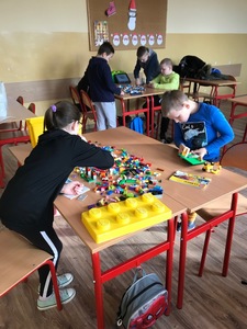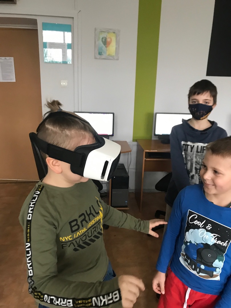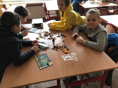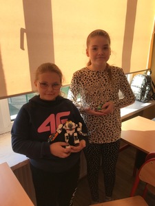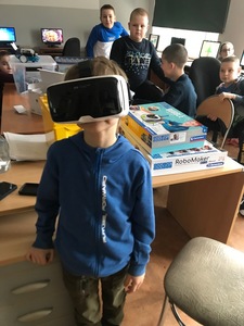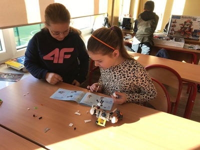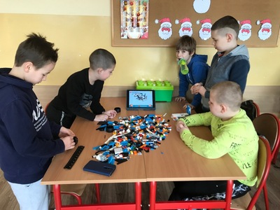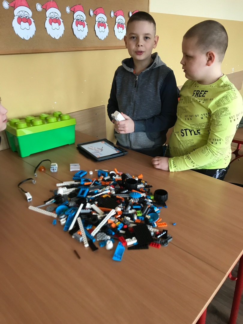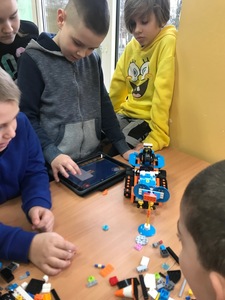 Na początku przypomnieliśmy i utrwaliliśmy, jakie zagrożenia mogą czyhać na nas w sieci oraz jakie są zalety tego, że żyjemy w „globalnej wiosce”. Dowiedzieliśmy się, co to jest algorytm. Wyruszyliśmy do krainy Scratcha, gdzie zaprojektowaliśmy własnego robota, a potem go „ożywiliśmy”. Udało się nam stworzyć swoją pierwszą grę „złap jabłko” oraz „kot goni myszkę”. Największą atrakcją jaka na nas czekała podczas zajęć, były klocki Lego. Zbudowaliśmy roboty oraz maszynę, którą mogliśmy sterować i programować. Rozpracowaliśmy też Mboty, które poruszały się wg naszych wskazówek. Zaprzyjaźniliśmy się z malutkim Robocikiem, który rysował zakodowane przez nas rysunki. Przenieśliśmy się też na chwilę do wirtualnej rzeczywistości.