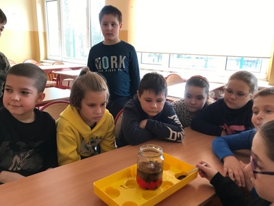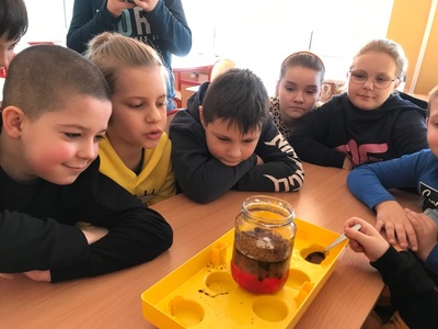 Z racji tego, że zajęcia miały również charakter przyrodniczy wykonaliśmy eksperymenty. Nie zabrakło wulkanu z lawą, kolorowego deszczu, oczyszczalni wody, jak również cieczy nienewtonowskiej.