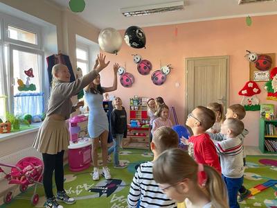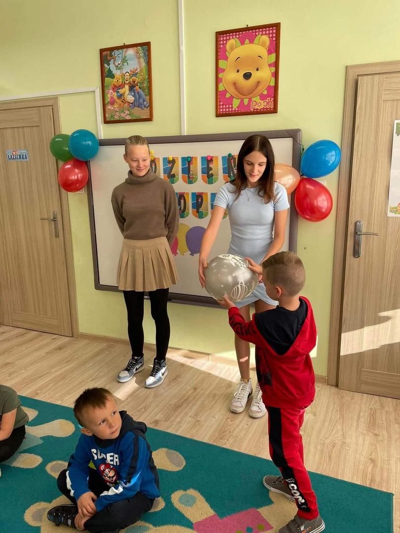 Dwie uczennice z SU - Konstancja i Julia - w ramach współpracy i wolontariatu zorganizowały również obchody Dnia Chłopaka w Przedszkolu nr 2.