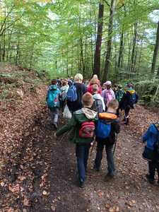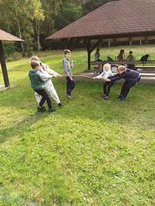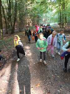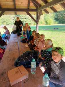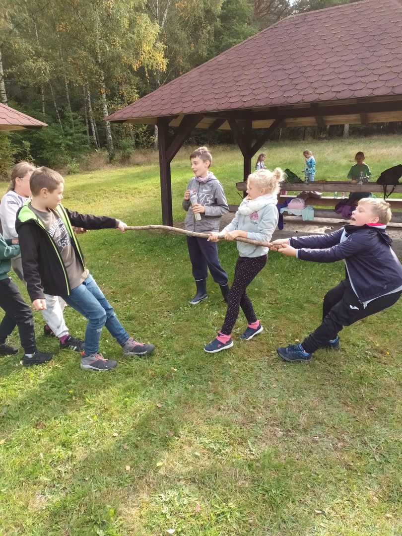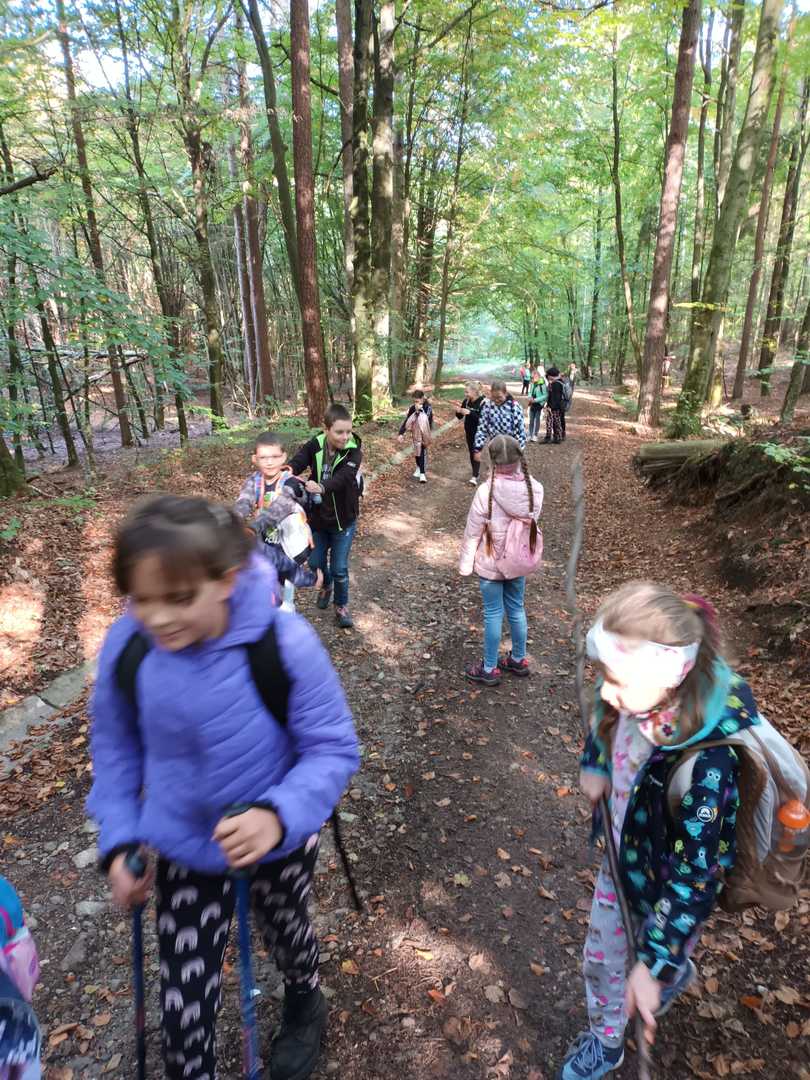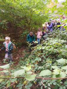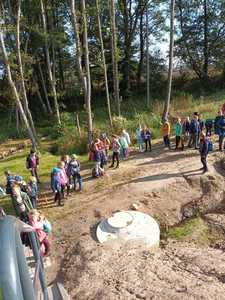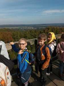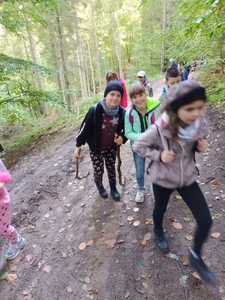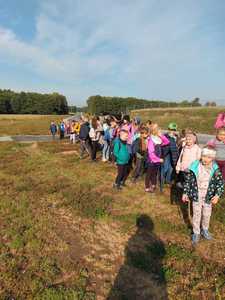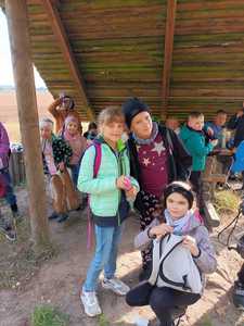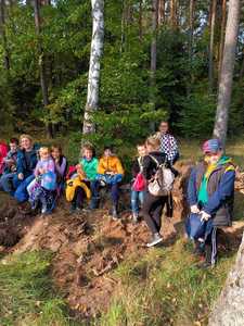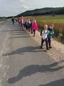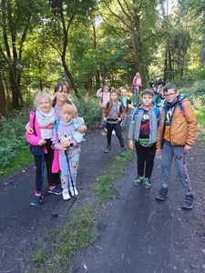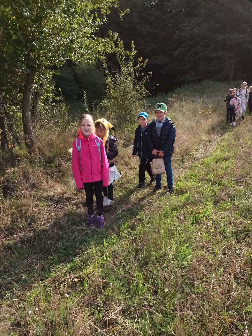1 października odbył się rajd pieszy na trasie Lębork - Bożepole Wielkie. Do Bożego Pola udaliśmy się pociągiem. Ze stacji ruszyliśmy w kierunku szlaku leśnego. Skrajem lasu przeszliśmy 500m, po czym wędrówka prowadziła zgodnie z tablicami "Leśniczówka Paraszyńska" i "Pole biwakowe". Następnie powędrowaliśmy południowym skrajem Pradoliny Łeby z widokiem na wieś Bożepole Wielkie i Małe oraz wzgórza wznoszące się na przeciwległym krańcu pradoliny. Dalej przeszliśmy malowniczymi wąwozami, gdzie wspięliśmy się na wierzchołek Jeleniej Góry. Jelenia Góra wznosi się 221m n.p.m. i jest najwyższym wzniesieniem Nadleśnictwa Strzebielino Morskie. Teren ten utworzył ustępujący lądolód skandynawski i jego wody roztopowe, pozostawiając liczne wąwozy, jary, pagórki i źródliska. Z punktu widokowego w kierunku północnym i wschodnim roztacza się piękna panorama na Pradolinę Łeby.