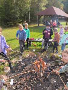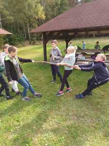 Ciężka to była przeprawa, ale warto było. Zakończenie rajdu odbyło się przy wiacie turystycznej, położonej na polu biwakowym. Nasi młodzi turyści, mimo długiej 14 - kilometrowej pieszej wędrówki, chętnie wzięli udział w grach i zabawach przy ognisku.