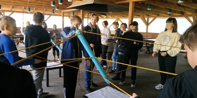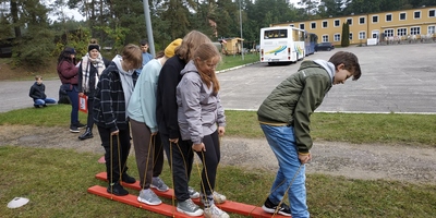 Uczniowie klas VIc oraz VIIIe wybrali się na jednodniową wycieczkę do Dąbrówki. Podczas zajęć integracyjnych uczestnicy musieli współpracować w zespołach klasowych, by osiągnąć wyznaczony cel. Była to okazja do wspaniałej zabawy, ale również integracji uczniów i aktywności na świeżym powietrzu. Ponadto wszyscy mogli sprawdzić swoje siły w zakresie spostrzegawczości i bystrości umysłów podczas gry terenowej, która miała miejsce na terenie Muzeum Saperskiego oraz Muzeum Techniki Wojskowej.