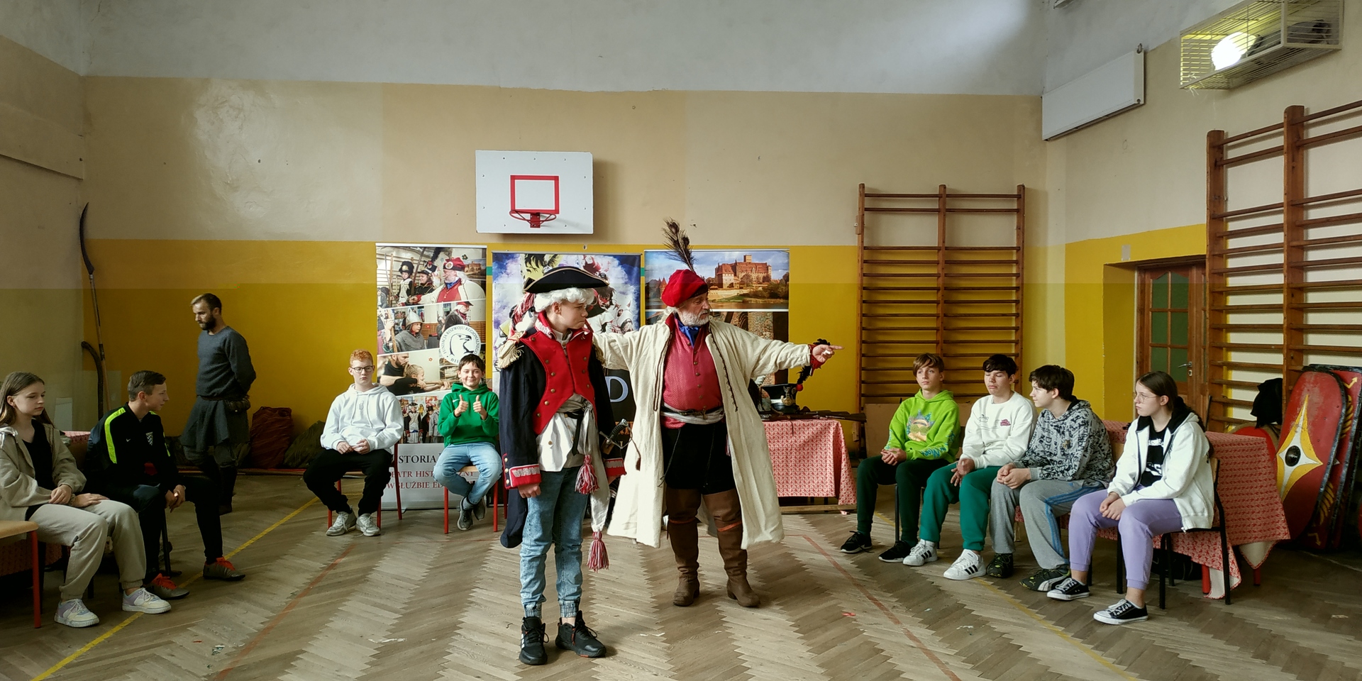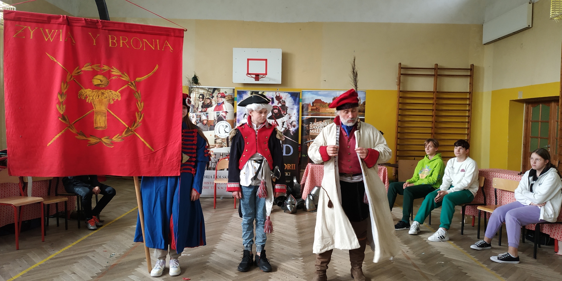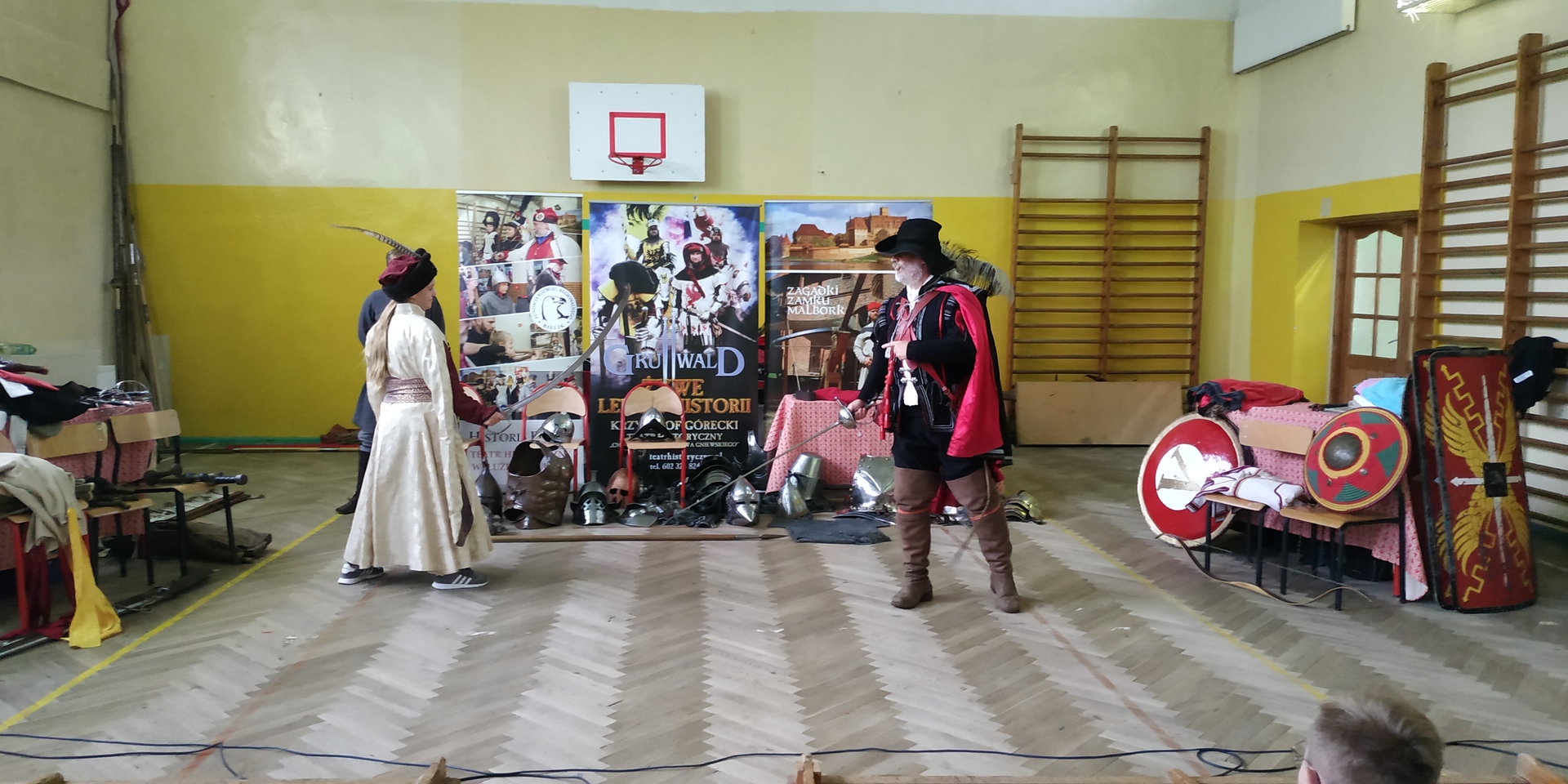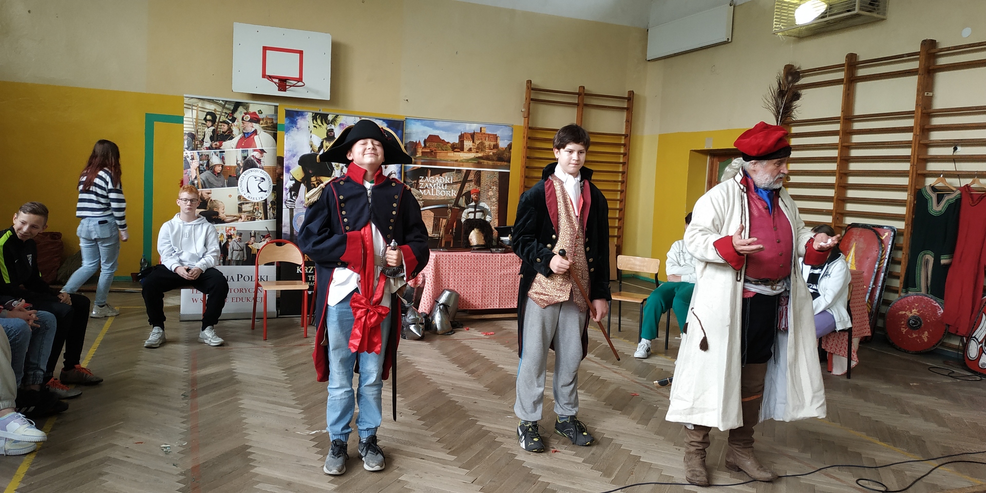 Kolejny już raz uczniowie naszej szkoły mieli okazję uczestniczyć w żywej lekcji historii. Tym razem w atrakcyjny sposób mogli poznać historyczne wydarzenia, panujące zwyczaje, obowiązujące stroje i uzbrojenie z XVII, XVIII i XIX wieku. Każda grupa wiekowa obserwowała i aktywnie uczestniczyła w historycznym przedstawieniu prezentującym inną epokę.
