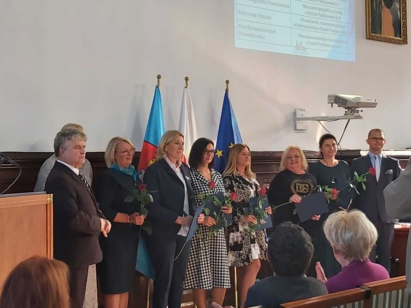 Dnia 14 października br. w Urzędzie Miejskim odbyło się uroczyste wręczenie nauczycielom i uczniom lęborskich szkół corocznych Nagród Burmistrza Miasta Lęborka. Za osiągniecia w pracy dydaktyczno-wychowawczej nagrodzeni zostali między innymi nauczyciele naszej szkoły – p. Barbara Gintowt-Dziewałtowska, Małgorzata Staniszewska i Irena Teliczan.