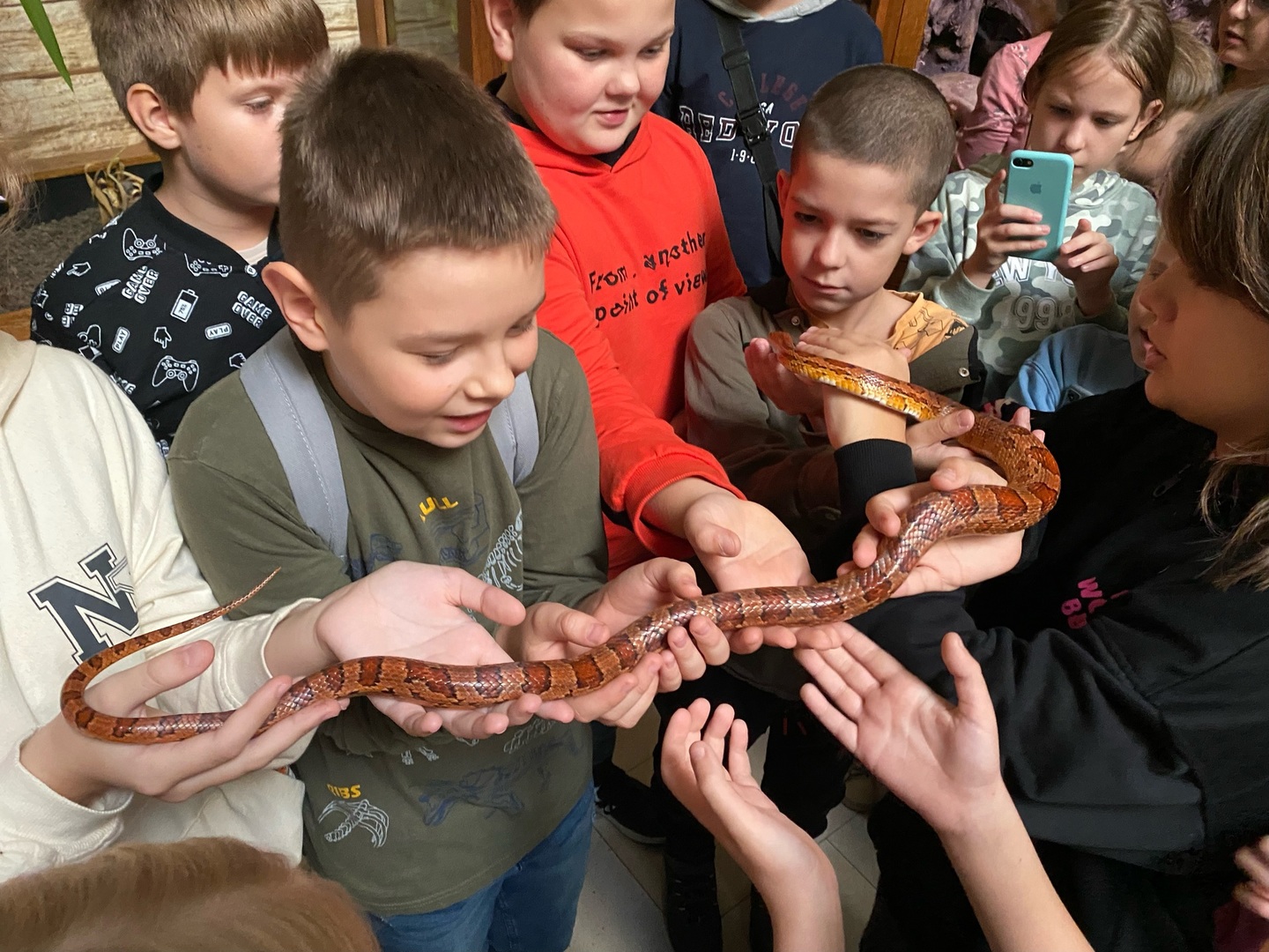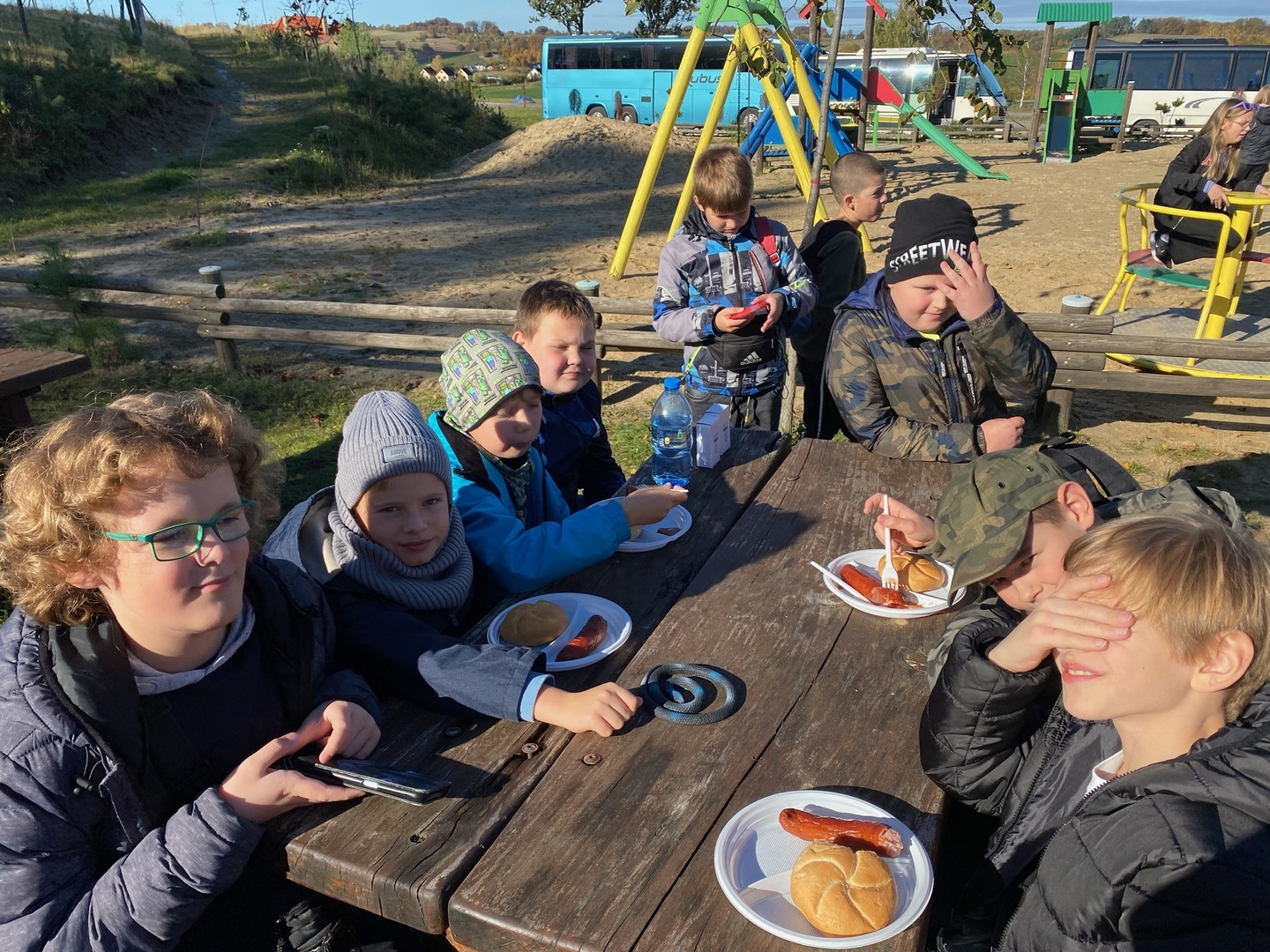 Październik miesiącem dobroci dla zwierząt. Z tej okazji dnia 20 października 2022 r. dzieci klasy 4a i 4b wybrały się na wycieczkę do Parku Edukacyjnego „Egzotyczne Kaszuby” w Tuchlinie. Jest to miejsce pełne zaskakujących niespodzianek. Obecność kilkudziesięciu egzotycznych gatunków zwierząt, nowoczesne kino 3D oraz wiele innych atrakcji sprawiają, że przygody w Parku są niezapomniane. Podczas wizyty w zoo uczniowie obejrzeli film o świecie dinozaurów. Wraz z przewodnikiem mogli nie tylko oglądać zwierzaki, ale również dowiedzieć się wielu ciekawostek na ich temat, a nawet dotknąć i zrobić sobie zdjęcie z wybranymi okazami. Na koniec wycieczki było wspólne pieczenie kiełbasek oraz zabawy na placu zabaw.