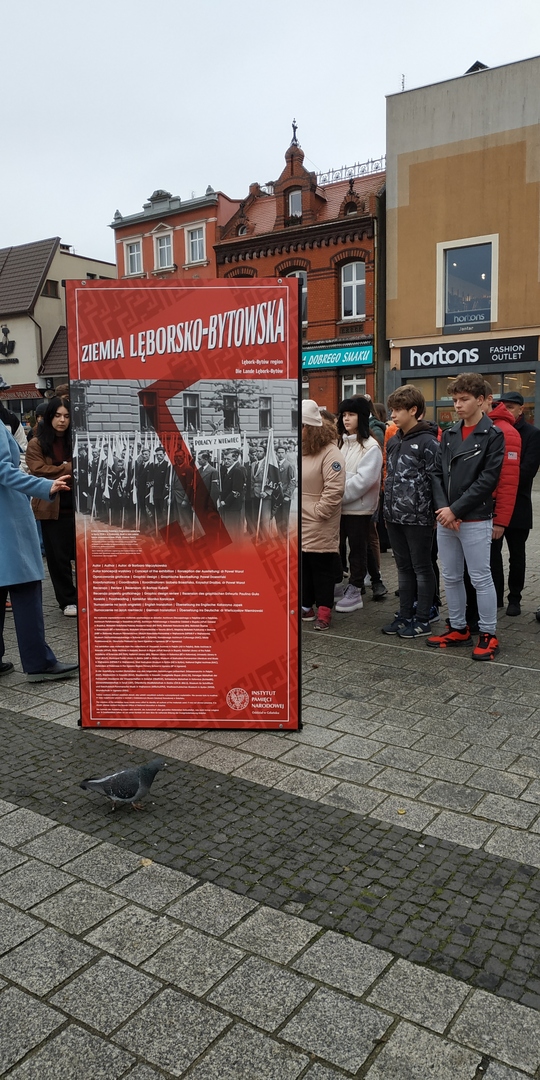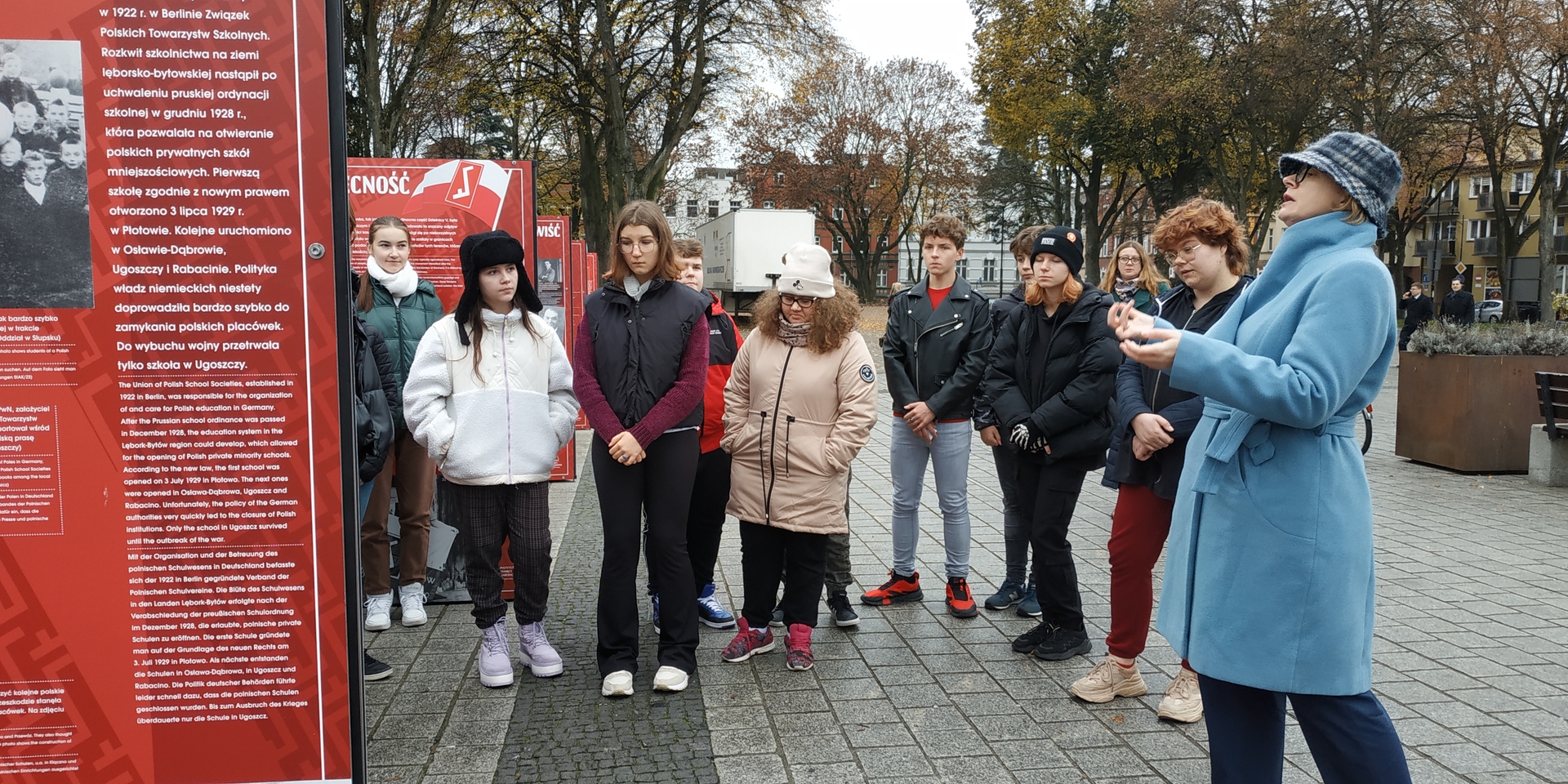 Uczniowie naszej szkoły wzięli udział w uroczystym otwarciu wystawy plenerowej "Jesteśmy Polakami" przygotowanej przez Gdański Oddział Instytutu Pamięci Narodowej z okazji 100. rocznicy powstania Związku Polaków w Niemczech. Wystawa opowiada o działalności Związku Polaku na terenie Ziemi Lęborskiej. Uczniowie mogli nie tylko obejrzeć przygotowane materiały, ale również wysłuchać prelekcji w wykonaniu autorki wystawy.
