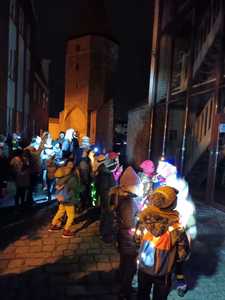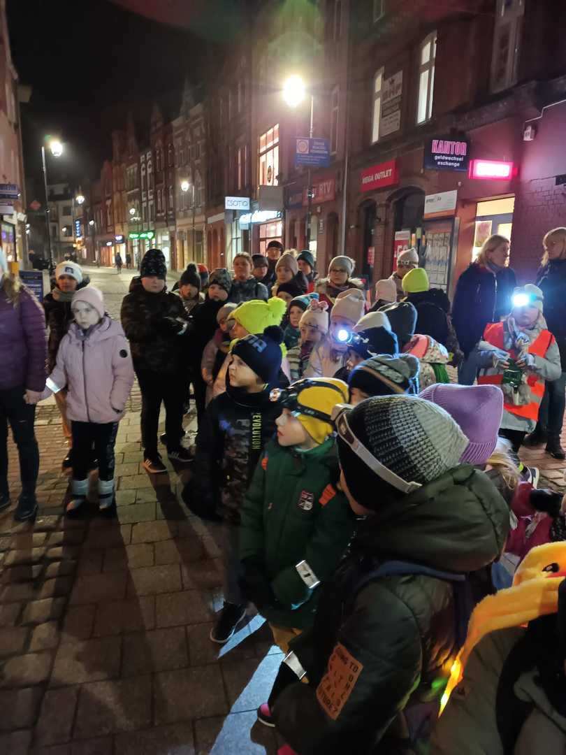 25 listopada uczniowie klas I - VIII w ramach koła turystycznego wzięli udział w szóstej edycji nocnego rajdu po Lęborku pt. "Krok po kroku bezpiecznie po zmroku". Uczestnicy, prowadzeni przez Pana Tadeusza Krawczyka, odwiedzili zabytkowe śródmieście Lęborka oraz zrewitalizowany miejski park w efektownym wieczornym wystroju, a także zapoznali się z historią i anegdotami związanymi z najciekawszymi obiektami na trasie. Ważnym punktem wędrówki była krótka prelekcja dotycząca zasad bezpieczeństwa w ruchu drogowym, w tym używania po zmierzchu elementów odblaskowych. Finałowym akcentem imprezy było ognisko na tzw. Starym Basenie, gdzie każdy uczestnik mógł skosztować pieczone kiełbaski.
