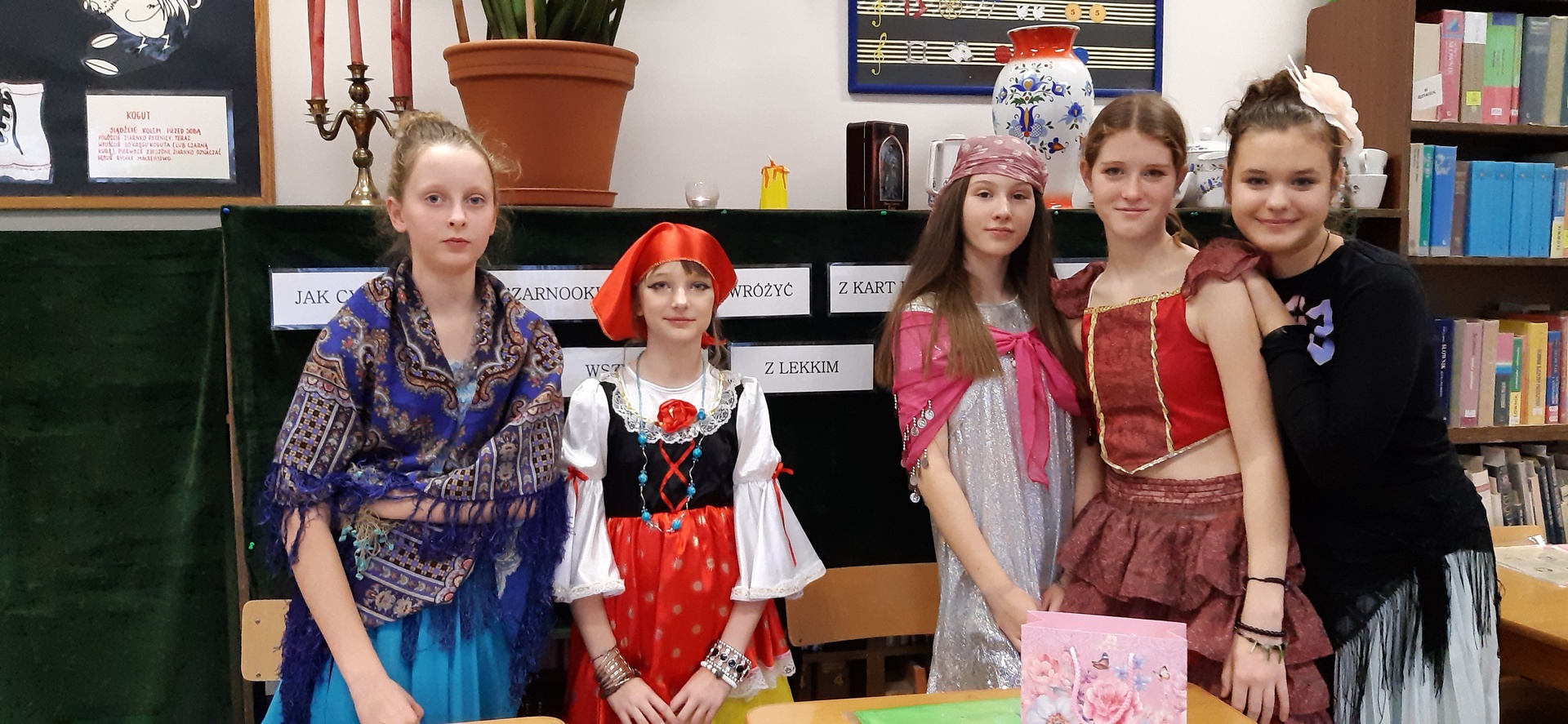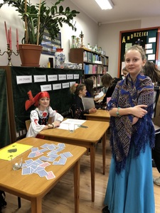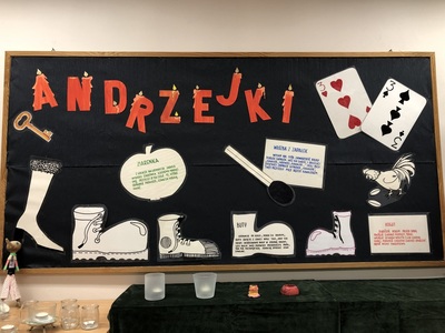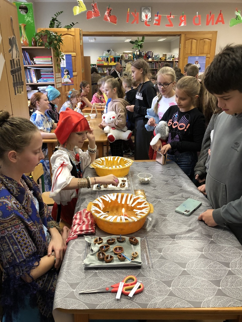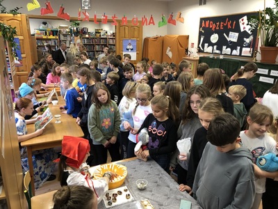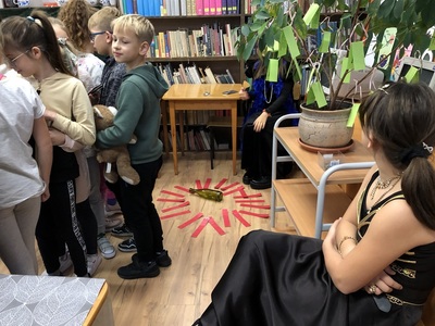 W piątek 25.11.2022r. w bibliotece szkolnej odbyły się wróżby andrzejkowe. Tego dnia każdy mógł odwiedzić bibliotekę i zapoznać się z andrzejkowymi zwyczajami i obrzędami, a także powróżyć sobie. Pomocą służyły wróżki w pięknych, kolorowych strojach. Każda z nich specjalizowała się w innej „dziedzinie wróżbiarstwa", np.: znaczenie imion, horoskop, przyszły zawód, karty, kości, szpilka prawdy i wiele innych.