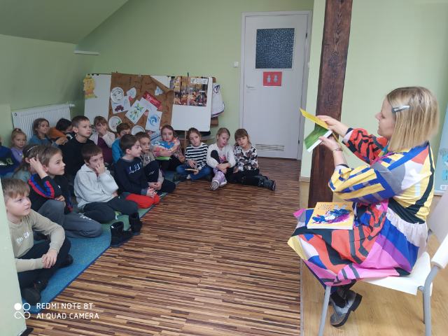 24.11.2022r. uczniowie klasy IIa wraz z wychowawcą Teresą wybrali się do Miejskiej Biblioteki Publicznej na spotkanie autorskie z ilustratorką książek dla dzieci p. Anną Kaźmierak. Dzieci dowiedziały się, jak autorka przygotowuje ilustracje do książek o tematyce ludowej. Wzięły też udział w warsztatach, przygotowując postaci zwierząt. Zajęcia były bardzo ciekawe i pouczające.