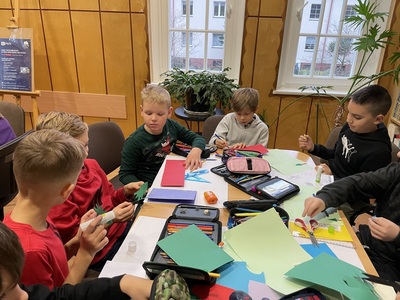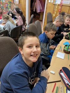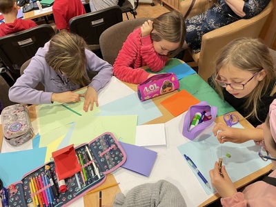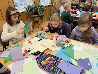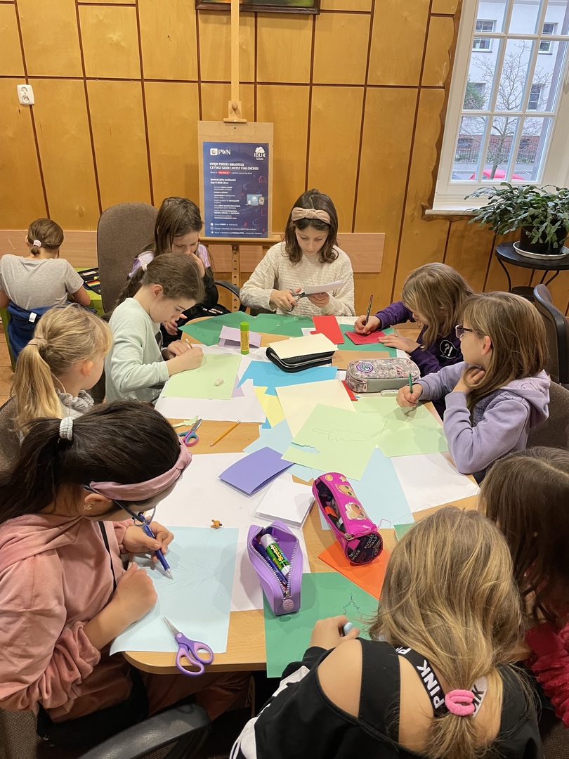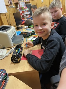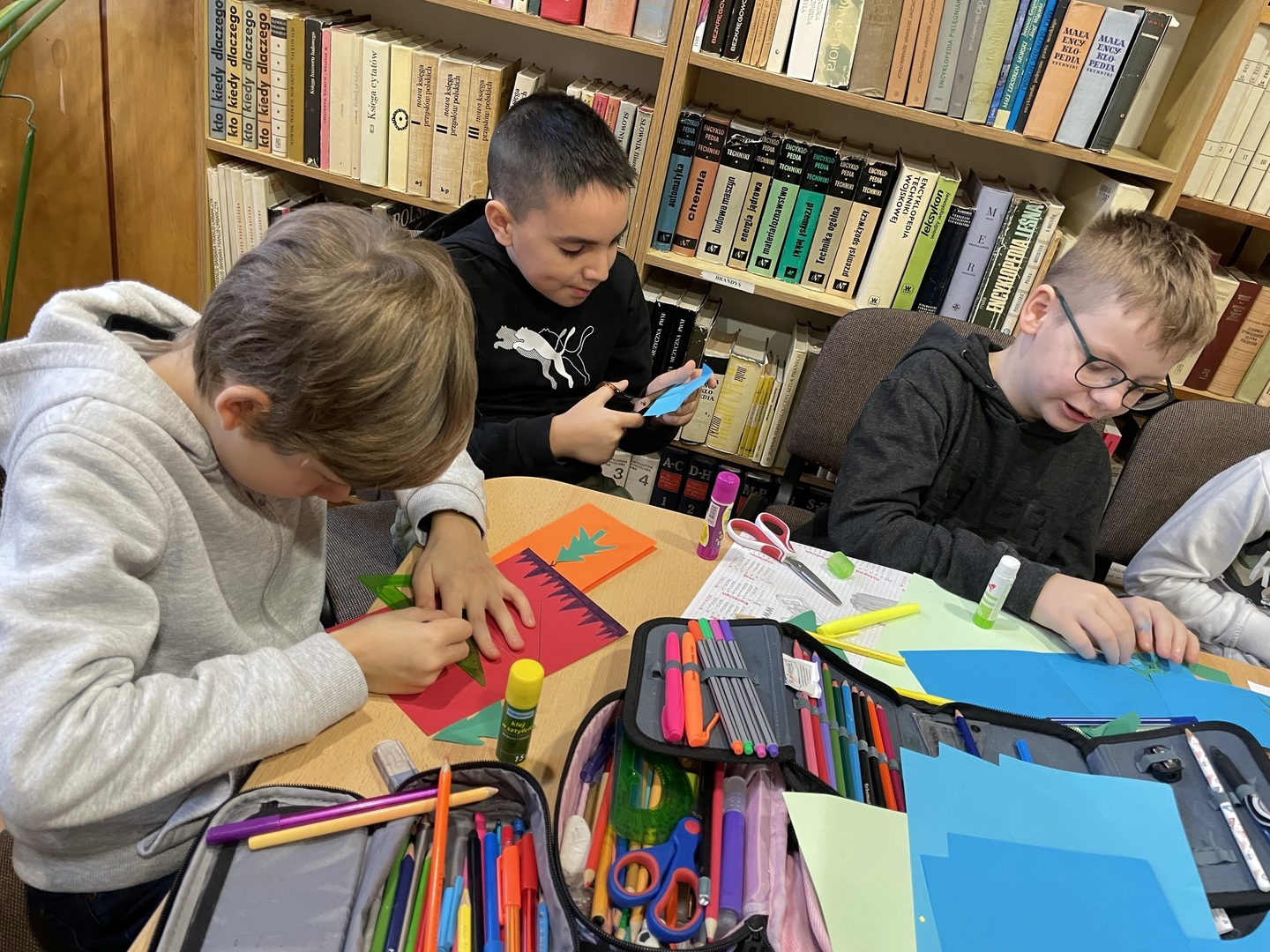 Uczniowie z klasy III C przyłączyli się do konkursu „Marzycielska Poczta”. Z tej okazji wybrali się we wtorek (29.11.2022 r.) do Biblioteki Pedagogicznej w Lęborku, gdzie wykonali 23 kartki, które zostaną wysłane do chorych dzieci, przebywających na oddziale onkologicznym w Instytucie Onkologii w Gliwicach.