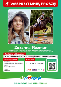 Zwracamy się do Państwa z gorącą prośbą o finansowe wspomożenie leczenia naszej niedawnej absolwentki - Zuzy Rezmer - córki jednego z nauczycieli w naszej szkole. Zuza wymaga pilnej operacji neurologicznej, której koszty są nie do udźwignięci przez samych rodziców. Z tego powodu, między innymi nasza szkoła włącza się w różne akcje pozyskiwania środków na ten cel - zbiórki pieniędzy, kiermasze, przedstawienie itp. Apelujemy do Państwa o solidarność i wsparcie finansowe. Pomóżmy w miarę naszych możliwości szybko powrócić Zuzie do zdrowia. Wystarczy wziąć udział w którejś z naszych akcji lub wejść na stronę https://www.siepomaga.pl/zuzia-rezmer i przekazać za jej pośrednictwem dowolną kwotę. Na tejże stronie znaleźć też można apel rodziców i więcej informacji na ten temat. Liczymy na zrozumienie i ofiarność darczyńców.