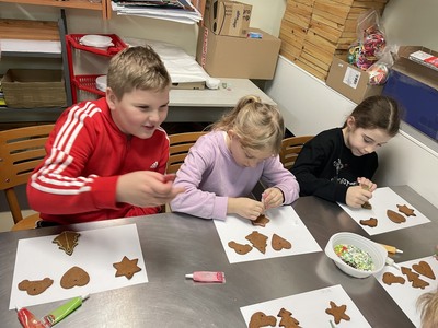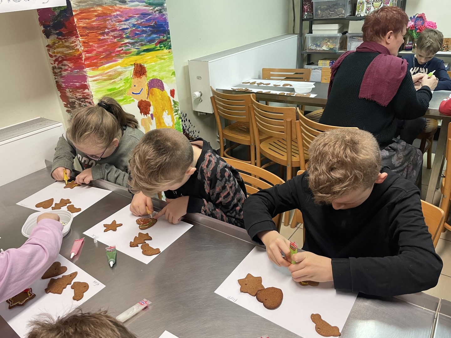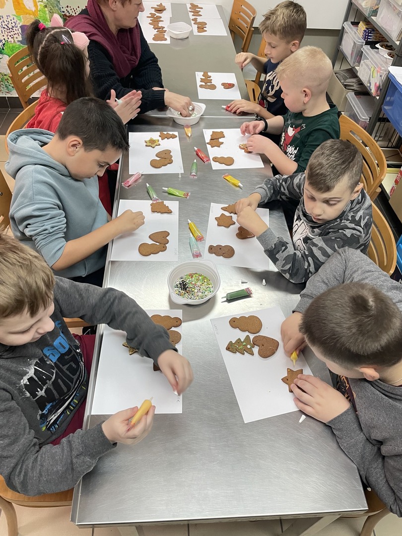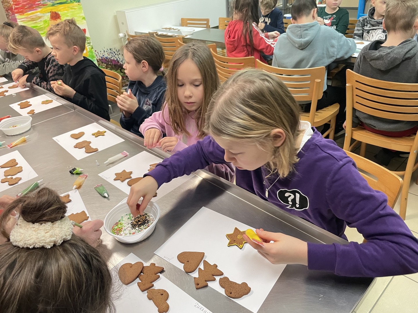 W dniu 15.12.2022 r. uczniowie klasy III c wybrali się do lęborskiego Muzem, gdzie mogli z powodzeniem rozwijać swoje cukiernicze zdolności, ozdabiając kolorowym lukrem i cukrowymi posypkami piękne i pachnące domowe pierniczki. Wszyscy z ogromnym entuzjazmem i zaangażowaniem wykonali zadanie. Efekt wizualny robi wrażenie!