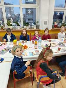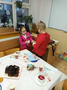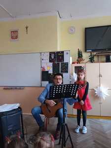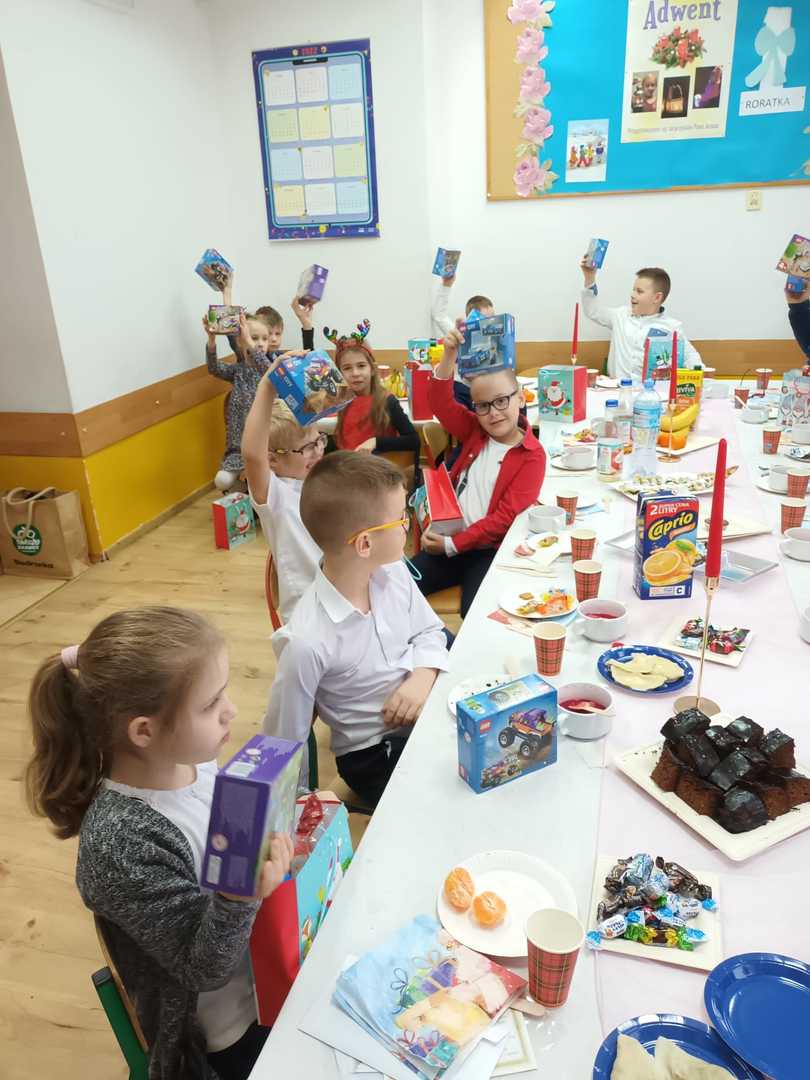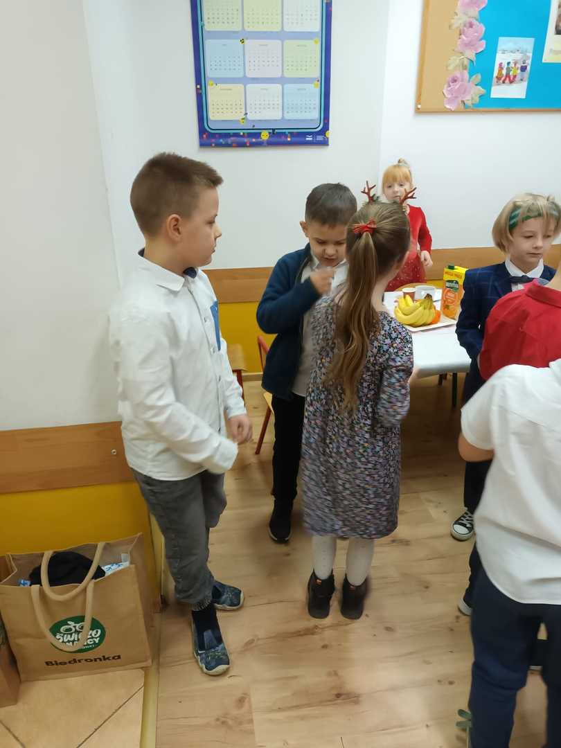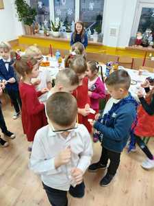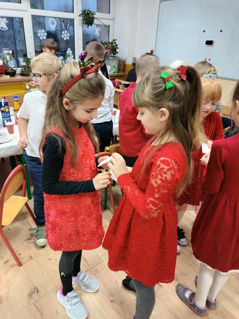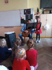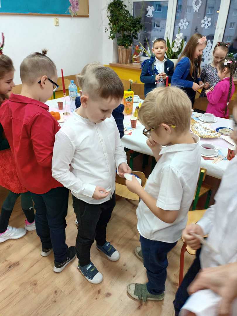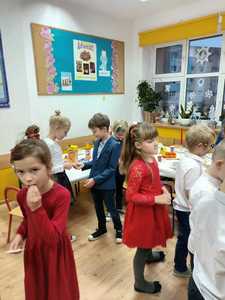 Czas przedświąteczny w klasie I a obfitował w wiele ciekawych, wspaniałych i niezwykłych wydarzeń. Uczestniczyliśmy w przedstawieniu "Piotruś Pan", obejrzeliśmy Jasełka w wykonaniu uczniów klasy II b, wzięliśmy udział w koncercie kolęd, które przygotował Pan Krzysztof Rezmer. W klasie odbyło się wigilijne spotkanie, odwiedził nas Mikołaj z pięknymi prezentami. To był magiczny czas.