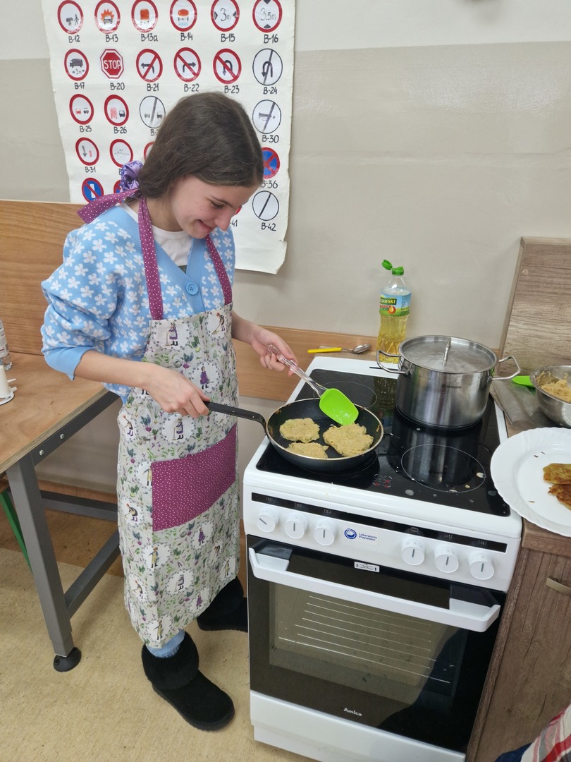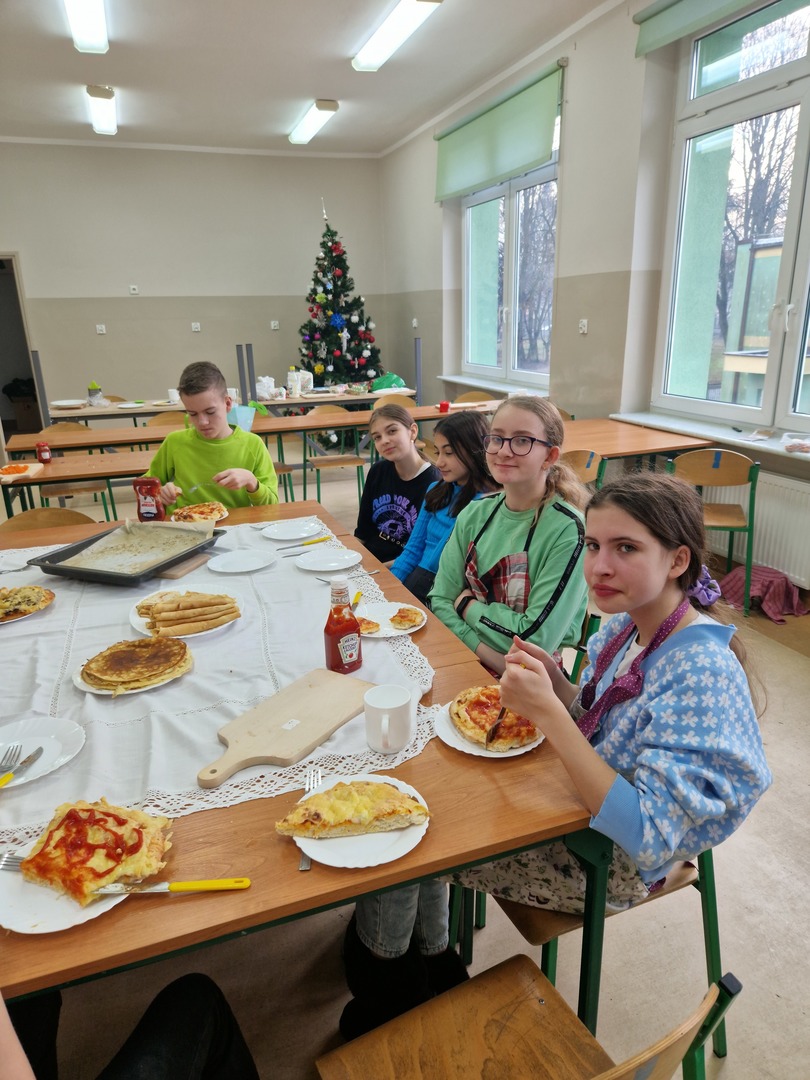 Dnia 17 i 18 I w I tygodniu ferii odbyły się zajęcia kulinarne. Chętni uczniowie wzięli udział w poznawaniu tajników przygotowania różnych potraw oraz kulturalnego ich podawania i spożywania. Uczniowie przygotowali spaghetti bolognese i carbonara, placki ziemniaczane, sałatki, pizzę i naleśniki.