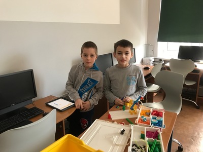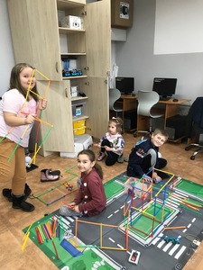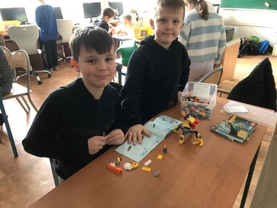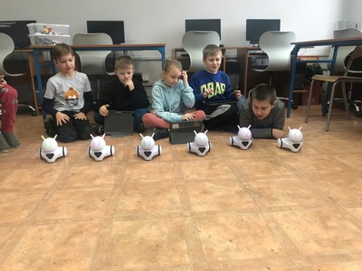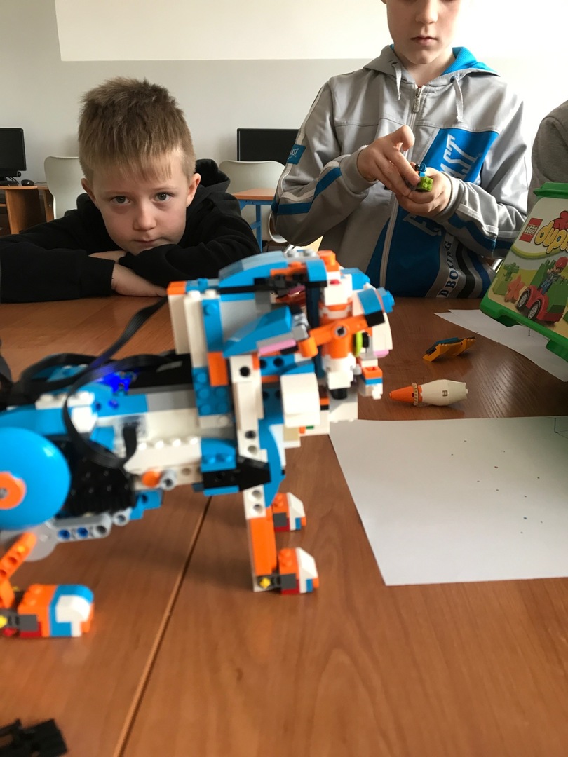 W pierwszym tygodniu ferii, chętni uczniowie uczestniczyli w zajęciach robotycznych. Czas upłynął nam bardzo efektywnie. Podczas zajęć konstruowaliśmy projekty z wykorzystaniem klocków LEGO Spike. Jest to narzędzie do edukacji STEAM (Science, Technology, Engineering, Arts, Mathematics), które łączy kolorowe elementy konstrukcyjne LEGO w łatwy w obsłudze sprzęt oraz intuicyjne środowisko kodowania typu przeciągnij i upuść oparte na języku programowania jakim jest Scratch. Na zajęciach nie zabrakło również Photonów – zdalnie sterowanych i programowalnych robotów, za pomocą których mogliśmy zagrać w piłkę, przejść przez własnoręcznie zbudowany tor, a nawet stworzyć układ taneczny. Mieliśmy możliwość przetestowania długopisu 3D oraz poznaliśmy Makey Makey, tworząc kontroler z ogórków, bananów czy jabłek .
