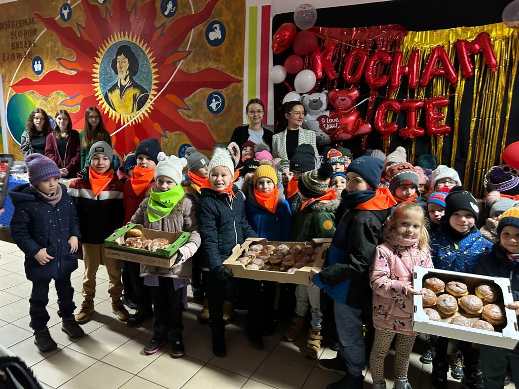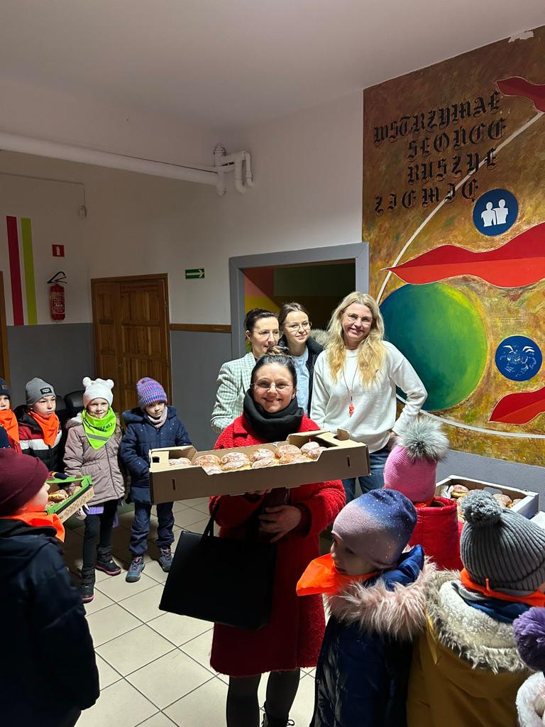Słodki zwyczaj został połączony w naszej szkole z akcją charytatywną na rzecz małej Antosi, podopiecznej Fundacji Dzieciom ZDĄŻYĆ Z POMOCĄ. Cały dochód ze sprzedaży pączków został przekazany na leczenie dziewczynki. Naszą akcję wsparło także Przedszkole nr 9 z Lęborka.