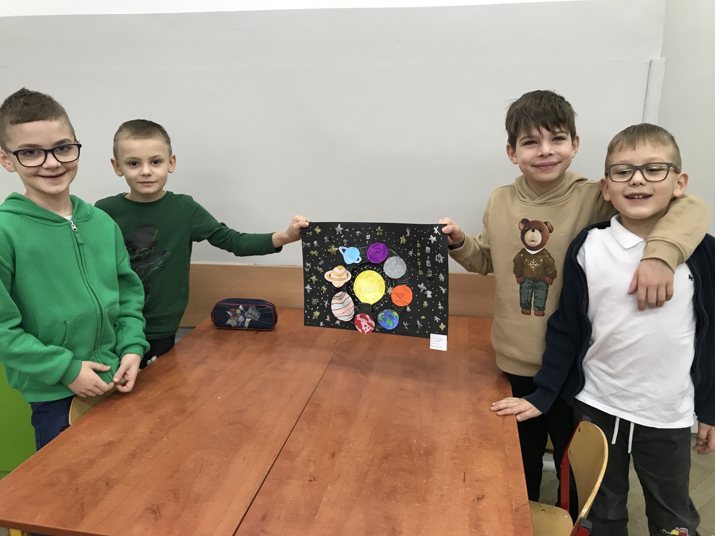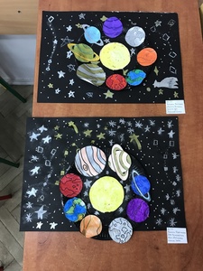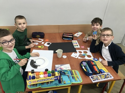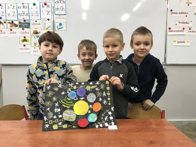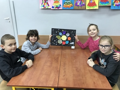 17 lutego uczniowie SP8 świętowali Dzień Patrona Szkoły. Każda klasa miała przydzielone zadanie, które opracowywały powołane do tego komisje. Klasy pierwsze wykonywały prace plastyczne o tematyce związanej z kosmosem. Uczniowie klasy 1 c pracowali w grupach i zrobili pomysłowy układ słoneczny z tekturowego talerzyka. Ta praca była wspaniałym doświadczeniem plastycznym, dzięki którym uczniowie odkrywali tajemnice kosmosu.