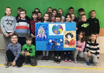 Praca zespołowa okazała się kluczem do sukcesu. Świetne pomysły, ciekawe materiały, nietypowe techniki i najważniejsze - współpraca! To wszystko dało efekt kosmiczny. Uczniowie klasy 2d zdobyli pierwsze miejsce wśród klas drugich na pracę plastyczną z okazji Święta Patrona Szkoły Mikołaja Kopernika!