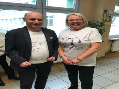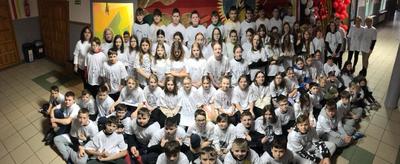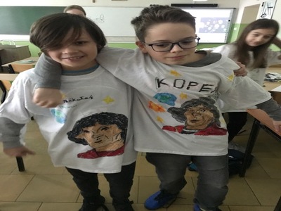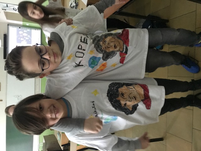 W piątek 17 lutego 2023 roku, obchodziliśmy Święto Patrona Szkoły- Mikołaja Kopernika. W tym dniu uczniowie klas piątych obejrzeli film o słynnym astronomie i wykazali się wiedzą na temat jego życia. Następnie odwzorowali twarz Kopernika na białych koszulkach. Prace zostały uwiecznione na wspólnym zdjęciu.
