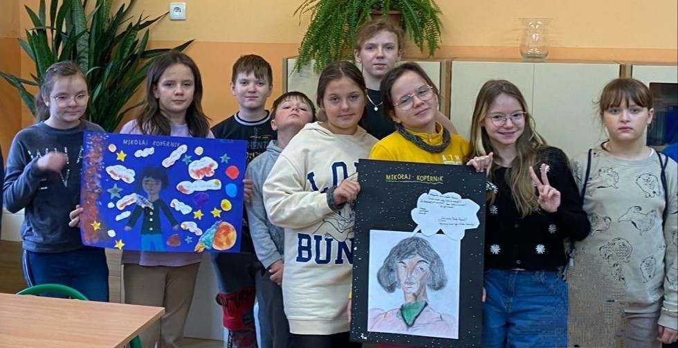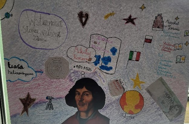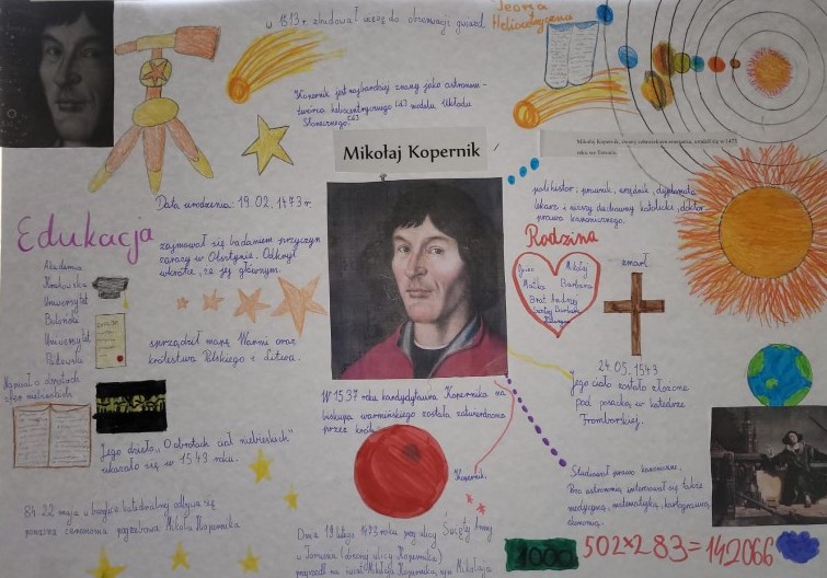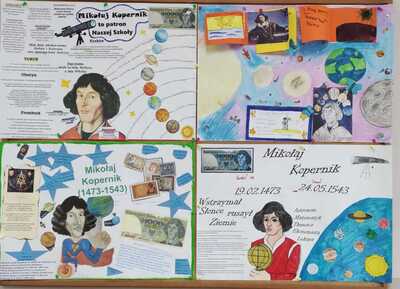 Z okazji Święta Patrona Szkoły - Mikołaja Kopernika uczniowie klas czwartych obejrzeli krótkie filmy przedstawiające postać sławnego uczonego, rozwiązali test sprawdzający wiedzę o jego życiu, następnie wzięli udział w konkursie plastycznym "Kopernik w skrócie". Wszystkie klasy za pomysłowe prace otrzymały nagrody nagrody pieniężne.