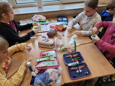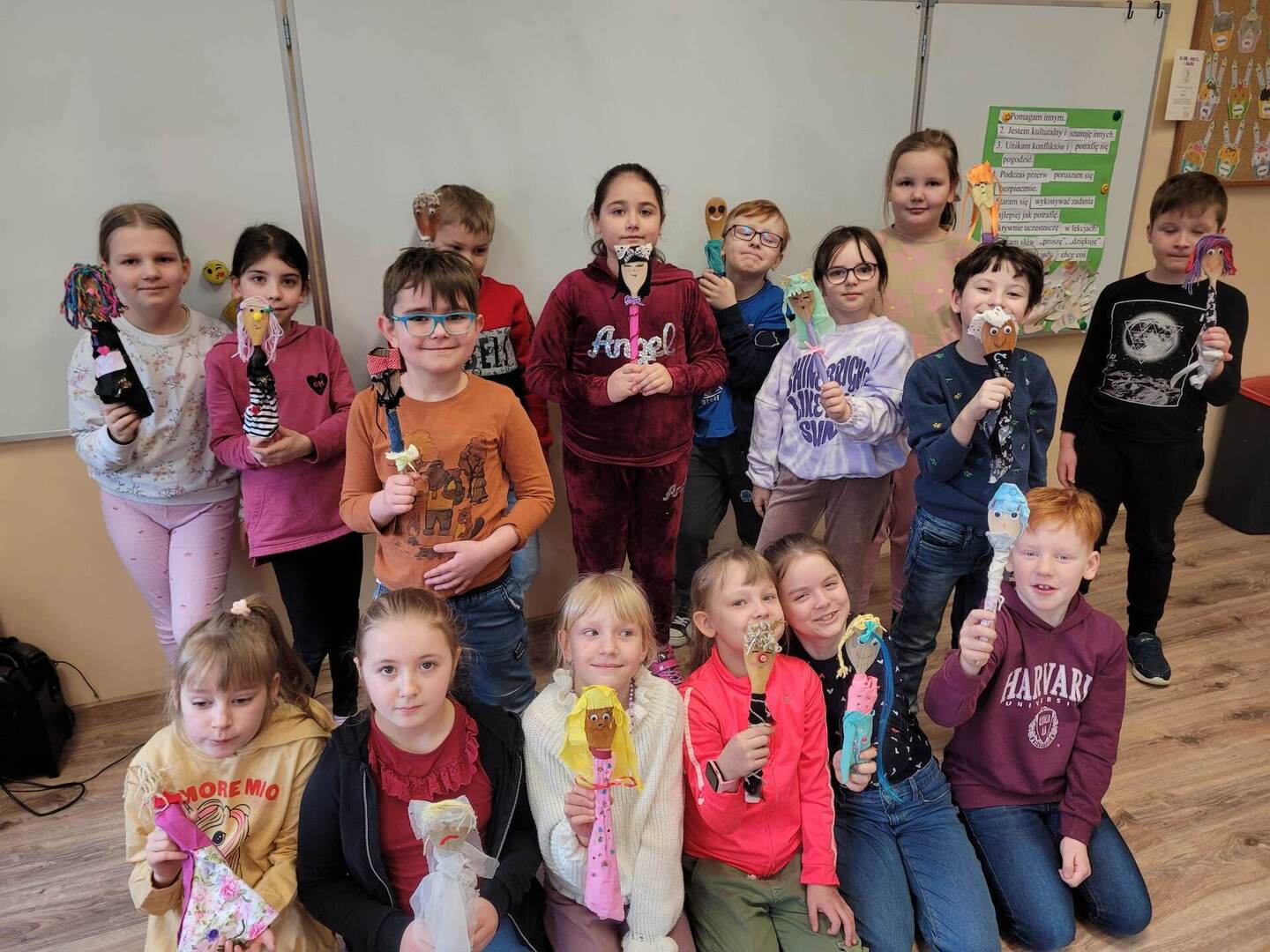 Na podsumowanie zajęć o teatrze uczniowie klasy 2 c wykonali przepiękne kukiełki. Do wykonania teatralnych rekwizytów wystarczyły drewniane łyżki, trochę tkaniny i odrobina wyobraźni. Lalki wyszły przepięknie!