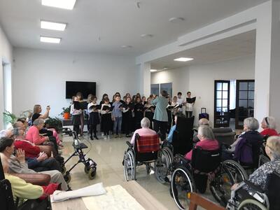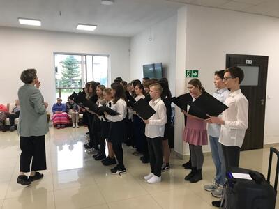 Chór szkolny wybrał się z wizytą do Domu Seniora Magnolia, gdzie umilał mieszkańcom dzień piosenkami, które specjalnie przygotował na tę okazję. Pensjonariusze dołączyli się do śpiewu i nagrodzili dzieci brawami oraz słodkim poczęstunkiem.