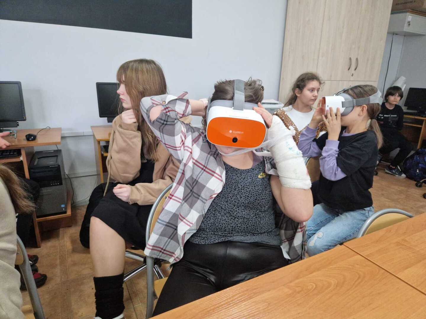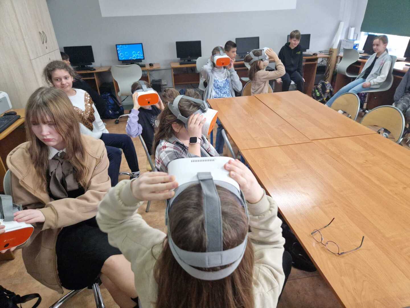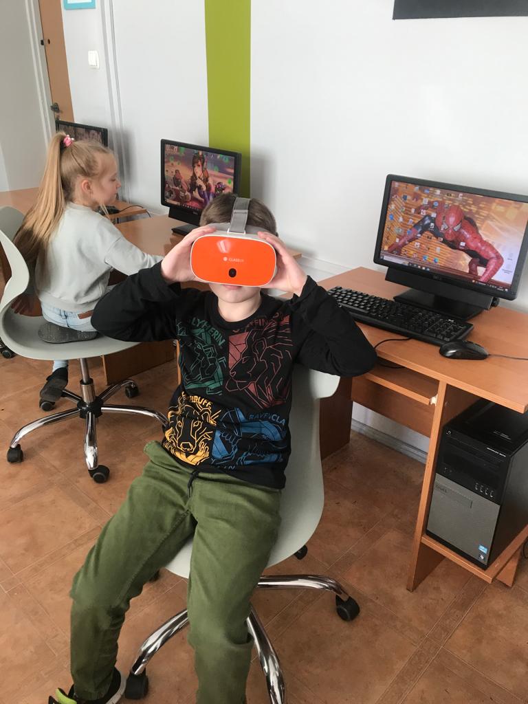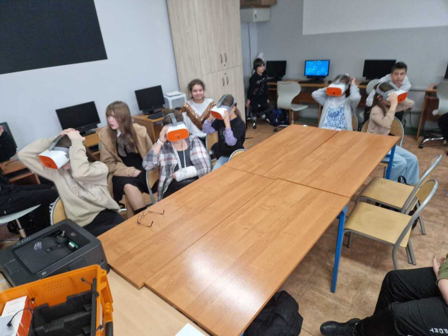 Uczniowie na lekcji techniki oraz kole informatycznym wyruszyli w podróż do wirtualnej rzeczywistości dzięki goglom VR.