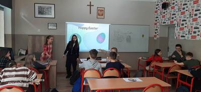 4 kwietnia miała miejsce lekcja poświęcona tradycjom i zwyczajom wielkanocnym panującym w krajach Wielkiej Brytanii. Lekcję w całości prowadziły uczennice grupy II klasy 5 a- Izabela Bojanowska oraz Eliza Lis pod nadzorem nauczyciela języka angielskiego- Ewy Staszewskiej. Dziewczyny samodzielnie stworzyły i przedstawiły prezentację multimedialną poświęconą tematowi, jak również przygotowały karty pracy dla uczniów. Ich koleżanki i koledzy mieli okazję obejrzeć krótkie materiały multimedialne w języku angielskim o tematyce związanej ze zbliżającymi się świętami. Uczennice, wcielając się w rolę nauczyciela, w bardzo ciekawy sposób przybliżyły grupie elementy kultury krajów anglojęzycznych. Happy Easter!