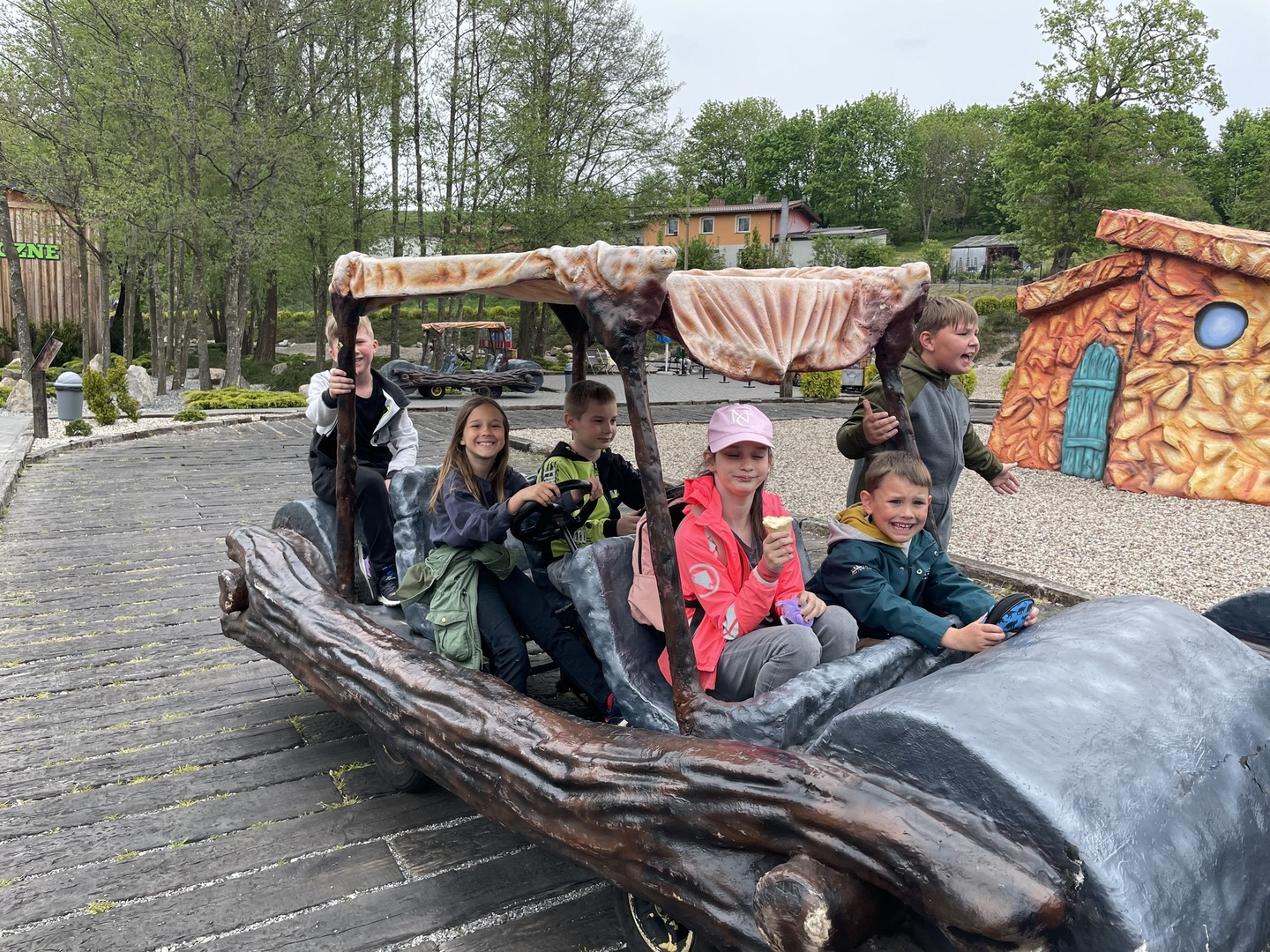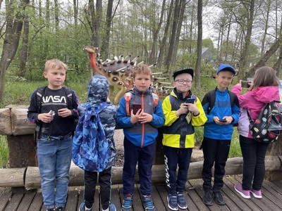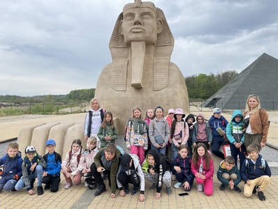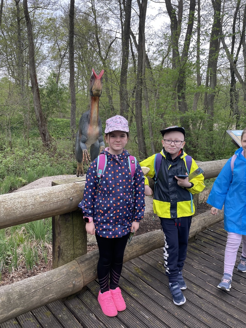 W dniu 15.05.2023 r. uczniowie klasy IIC i IIIC zwiedzili Park Ewolucji w Sławutówku. Uczestnicy obejrzeli film w Kinie Prehistorycznym, stanęli oko w oko z największymi prehistorycznymi gadami, obejrzeli też “Wystawę Ewolucji Człowieka”, a także zobaczyli, jak ludzie w różnych epokach i częściach świata wytwarzali narzędzia, jak polowali oraz jak próbowali zapisywać informacje. Ogromne wrażenie zrobiła piramida, w której straszyły duchy faraonów, oraz sfinks stojący nieopodal. Na koniec wycieczki wszyscy odbyli krótką podróż kolejką górską Dragon Coaster, a następnie Dino Pociągiem, po czym jeździli pojazdami Flinstonów. Jak widać na poniższych zdjęciach, atrakcji nie brakowało J