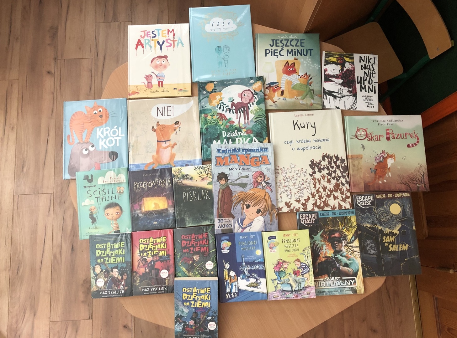 NOWOŚCI W BIBLIOTECE SZKOLNEJ Zapraszamy Czytelników do wypożyczania nowych książek. Śpieszcie się – do wakacji pozostało już niewiele czasu :-) PANIE BIBLIOTEKARKI Galeria zdjęć Powiązane wiadomości Park Ewolucji Konkurs ortograficzny kl. 3 Loteria fantowa NOWOŚCI W BIBLIOTECE SZKOLNEJ KONKURS ORTOGRAFICZNY DLA KLAS VII ZBIERAJ BUTELKI PET Drukuj Udostępnij Data dodania: 17.05.2023 Wyświetlono: 75 Aktualności