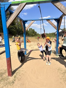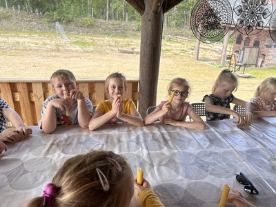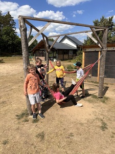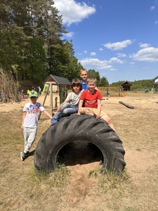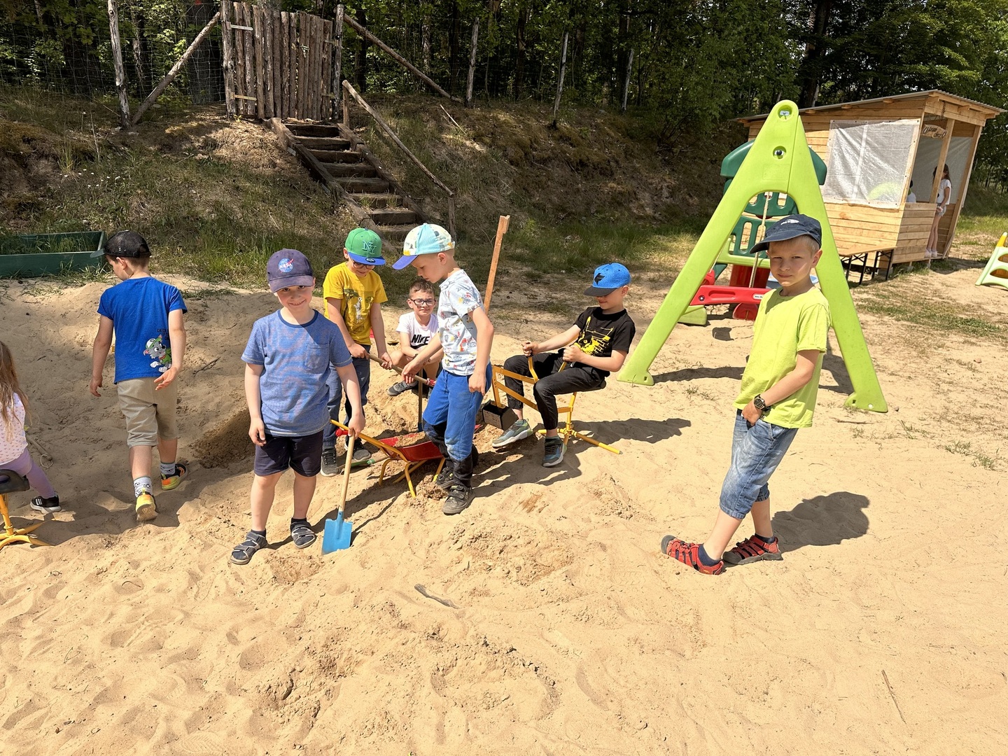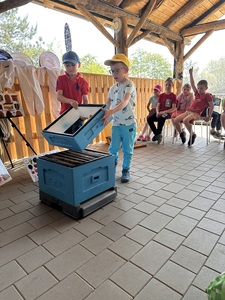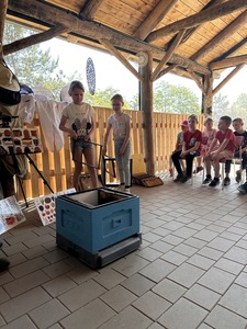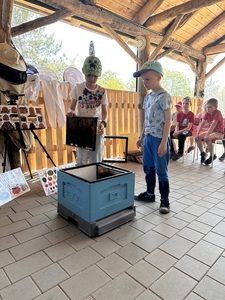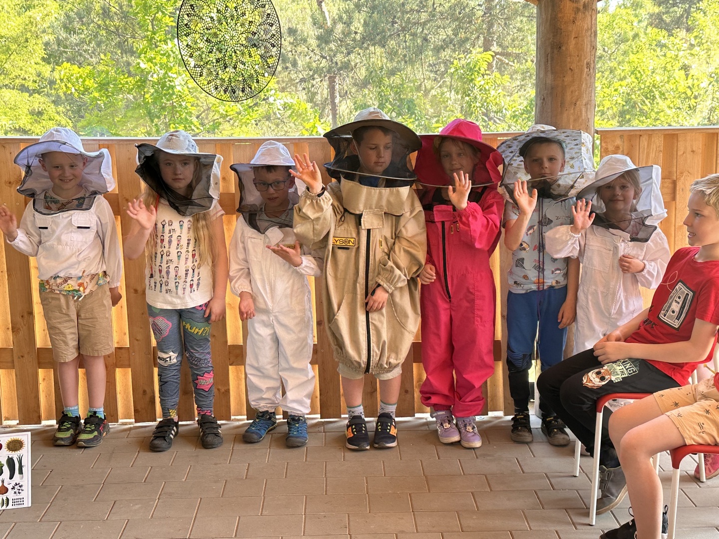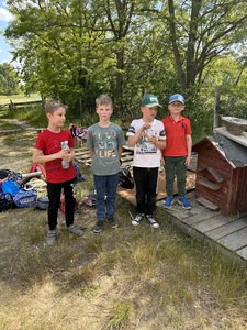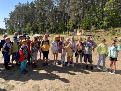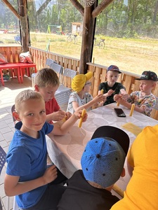 We wtorek zespoły klasowe I B i I C udały się na wycieczkę klasową do Niezabyszewa. W Zagrodzie Cud-Miód pierwszoklasiści wzięli udział w warsztatach pszczelarskich, dzięki którym mogli zapoznać się z historią pszczelarstwa i bartnictwa, uczestniczyli w pokazie sprzętu pszczelarskiego, przygotowali świeczki z wosku pszczelego, obejrzeli film edukacyjny o pszczołach. Dzięki temu łatwiej im było zrozumieć, jak tak naprawdę wygląda praca w pasiece. Warsztaty z całą pewnością były świetnym uzupełnieniem zajęć z zakresu edukacji przyrodniczej. Połączone były z zabawą na świeżym powietrzu. W wolnym czasie dzieci ochoczo korzystały ze strefy zabawy na ekologicznym placu zabaw. Pod koniec pobytu zjadły upieczoną kiełbaskę. Urzekające widoki, piękna pogoda i atrakcyjne aktywności gwarantowały wszystkim dobrą zabawę.