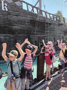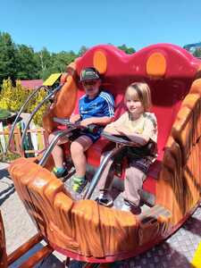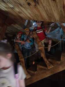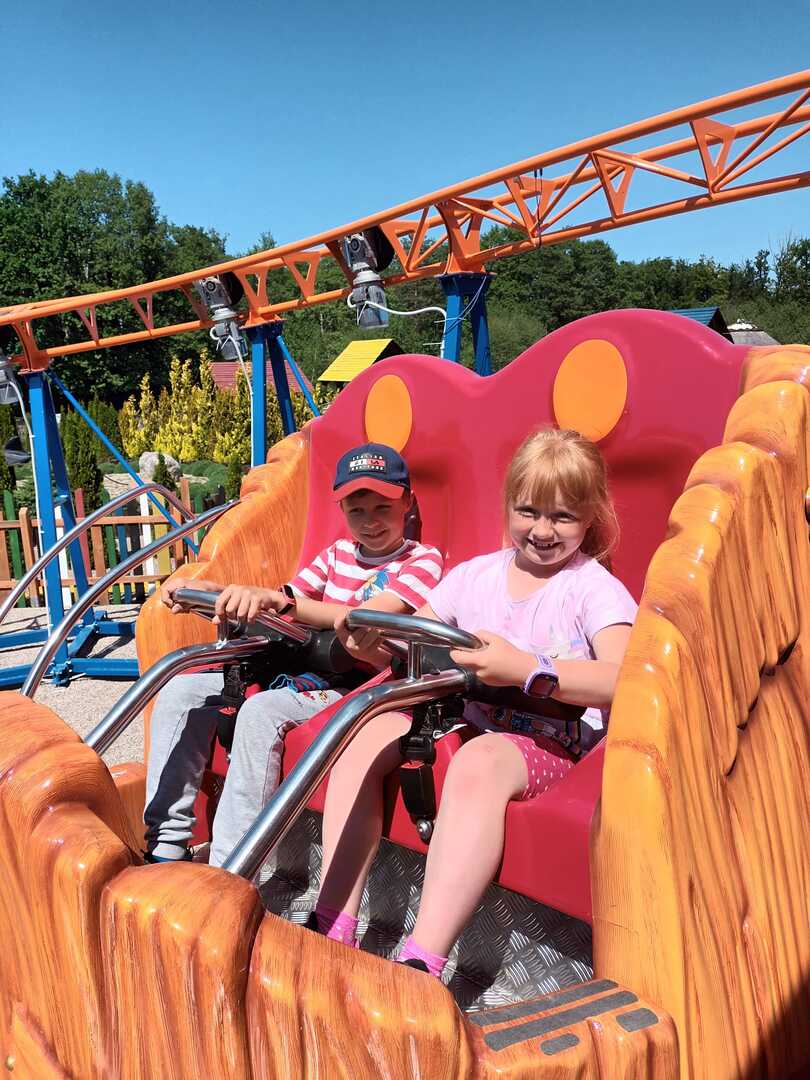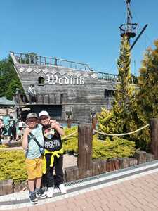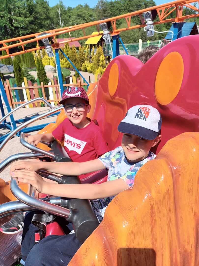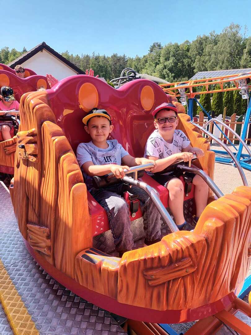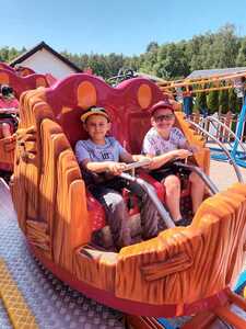 Kolejnym punktem wycieczki była przejażdżka super kolejką, która zapewniła niezapomniane emocje: zarówno chwile grozy, jak łzy szczęścia oraz okrzyki radości. Świetną atrakcją dla dzieci pobudzającą do aktywności fizycznej był Park Zręcznościowo - Linowy Małego Pirata.