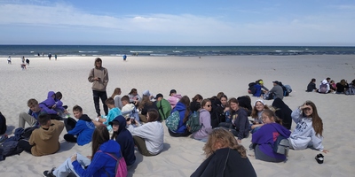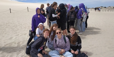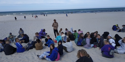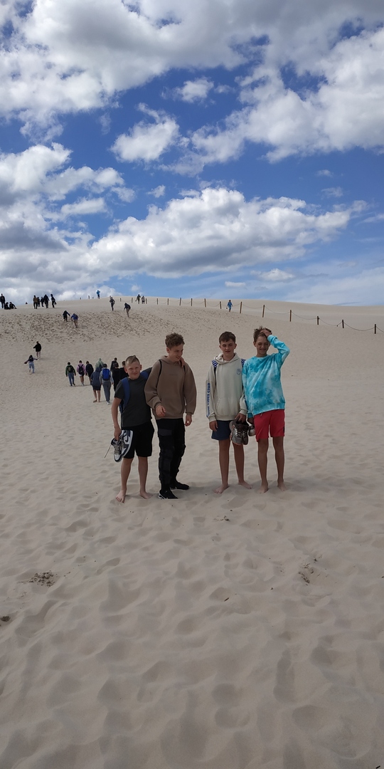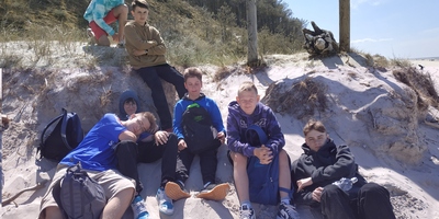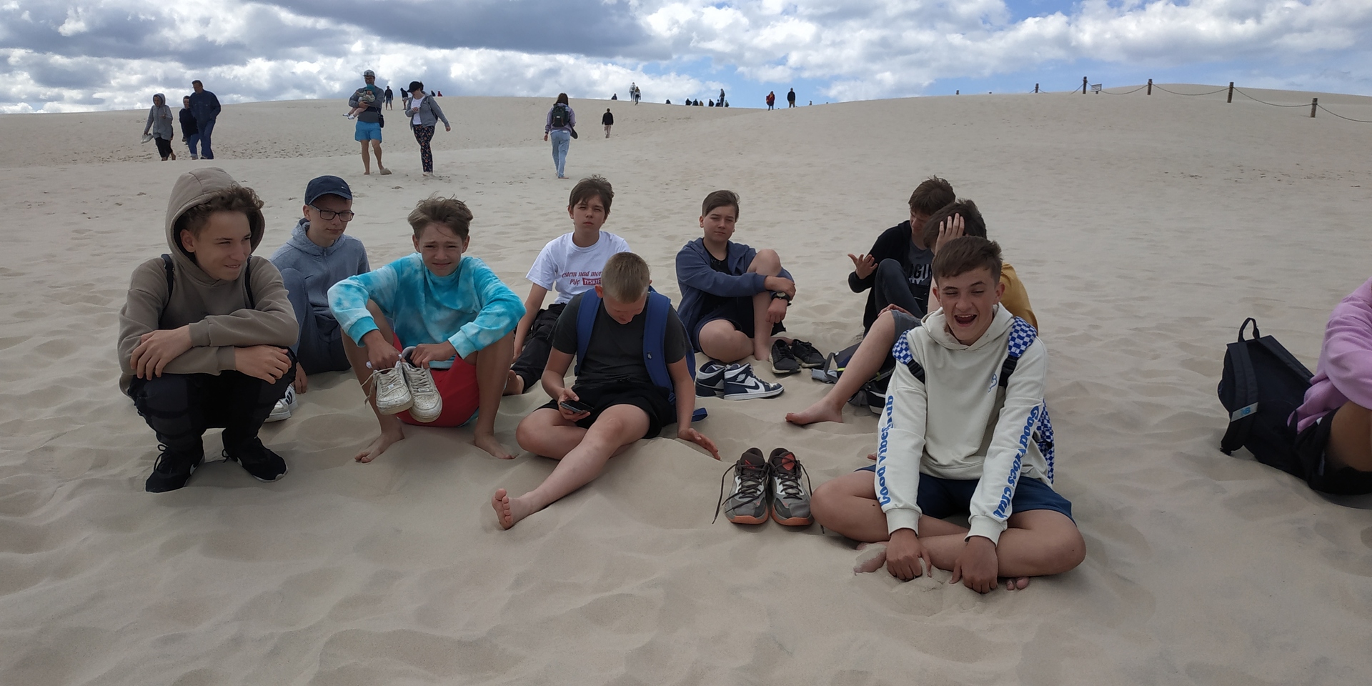 Uczniowie kl. 8e, 8d oraz 8c spędzili trzy dni na biwaku w Łebie. W tym czasie pokonali zawiłe ścieżki labiryntu, gdzie mieli do wykonania zadania grupowe. W Muzeum Bursztynu zdobyli wiedzę na temat epoki lodowcowej i wyglądu lasu przed 40 mln lat. Poszukiwali też ukrytego w piasku złota Bałtyku. Wybrali się także na całodniową wyprawę na wydmy oraz zwiedzili Muzeum Figur Woskowych. Wieczorem bawili się na przygotowanej specjalnie dla nich dyskotece. Nie zabrakło ogniska i pieczenia kiełbasek. Atrakcją była przygotowana przez rodziców niespodzianka w postaci waty cukrowej oraz popcornu. Wartościową rozrywką okazały się mecze w piłkę siatkową rozgrywane na boiskach znajdujących się na terenie ośrodka.