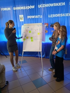 W czwartek przedstawiciele Samorządu Uczniowskiego: Kasia, Nikola i Ksawier wzięli udział w III Forum Samorządów Uczniowskich Szkół Podstawowych Powiatu Lęborskiego. Wspólnie w grupach wypracowywali plan na różne działania i szkolne inicjatywy w nowym roku szkolnym. I tak powstał zarys pomysłów pod tytułem "Rola samorządu uczniowskiego w integracji społeczności szkolnej".