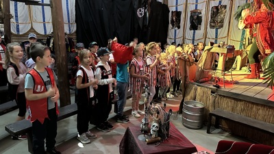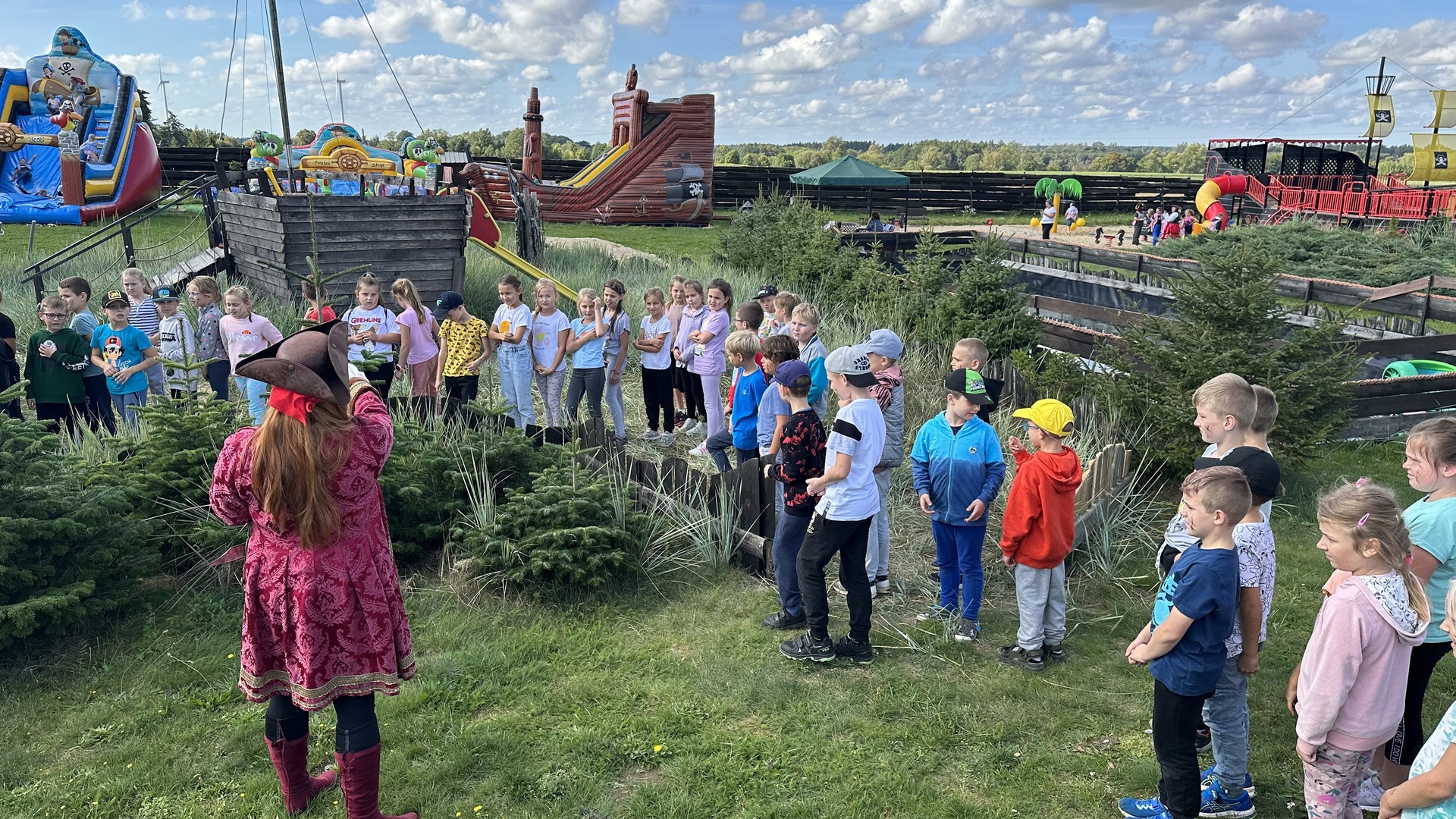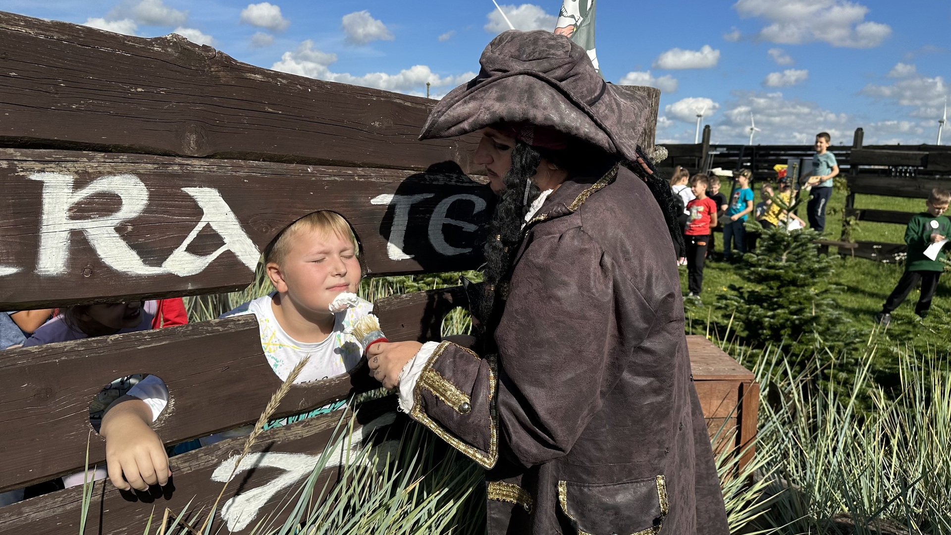 25 września zespoły klasowe 2 b i 2 c przeżyły moc wrażeń w pirackiej bazie. Gdy tylko uczniowie wjechali do Grąbkowa, autokar zatrzymali piraci, którzy przywitali wszystkich piosenką. Oznajmili, że porywają wycieczkowiczów do tajnej bazy, a tam zwerbują do załóg pirackich. Drugoklasiści zostali poddani wielu sprawnościowym testom, tj. : przeprawa pirackimi łódeczkami, przejście po moście linowym z pirackich beczek, ściganie na pirackich tratwach, poszukiwania ostatniego medalionu Azteków w ciemnościach Groty Krakena, pirackie tatuaże. Następnie obejrzeli przedstawienie interaktywne z Jackiem Sparrowem i jego pomocnikami. Nauczyli się pirackich przyśpiewek i tańca piratów.